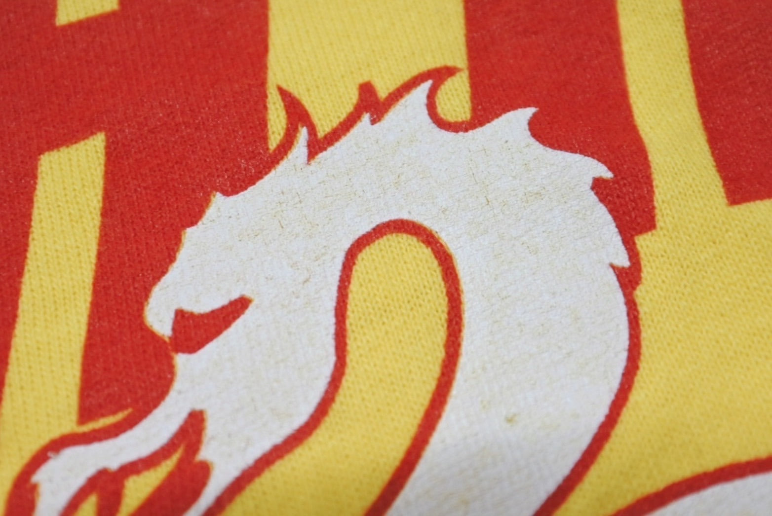 全体的に使用感、毛羽立ちあり。フロントプリント部分に若干のヒビ割れあり。その他目立つ傷や汚れの少ない美品です。
