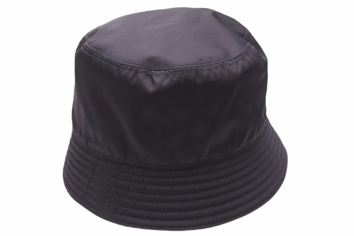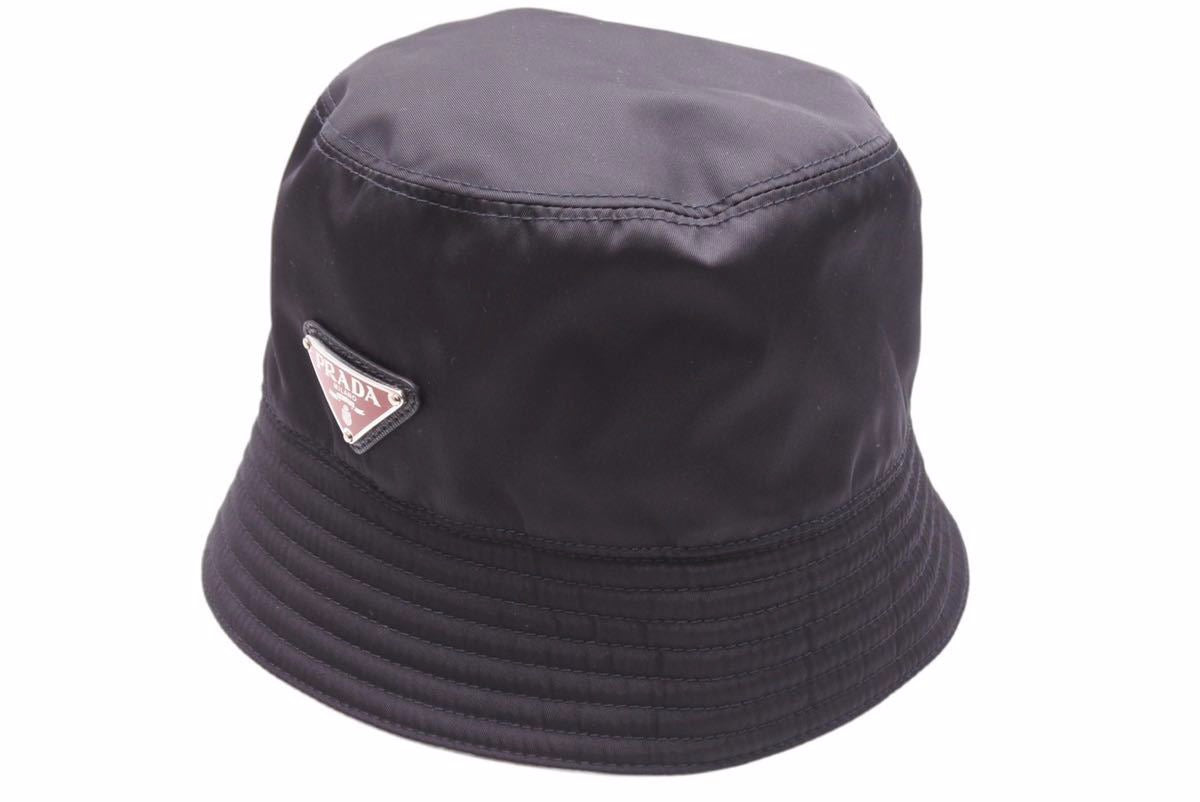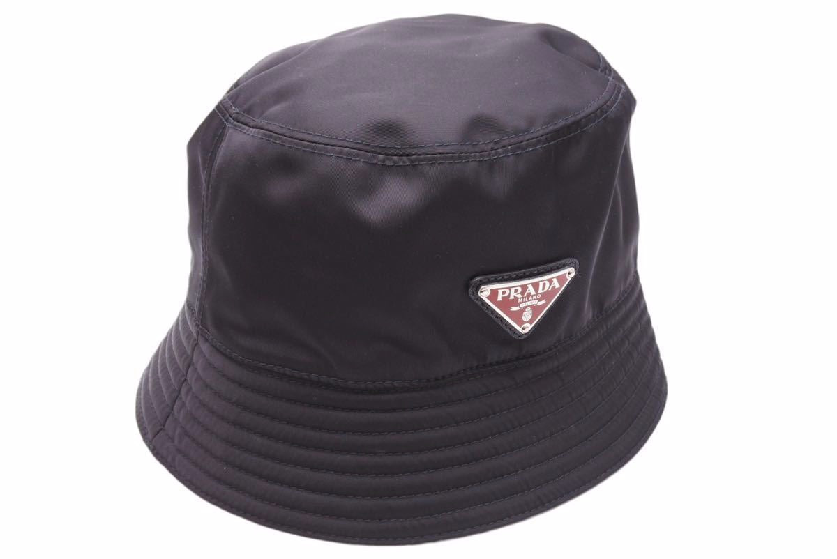 PRADA プラダ バケット ハット ナイロン 帽子 無地 ブラック レッド 黒 赤 S 三角ロゴ 三角プレート 中古 42308