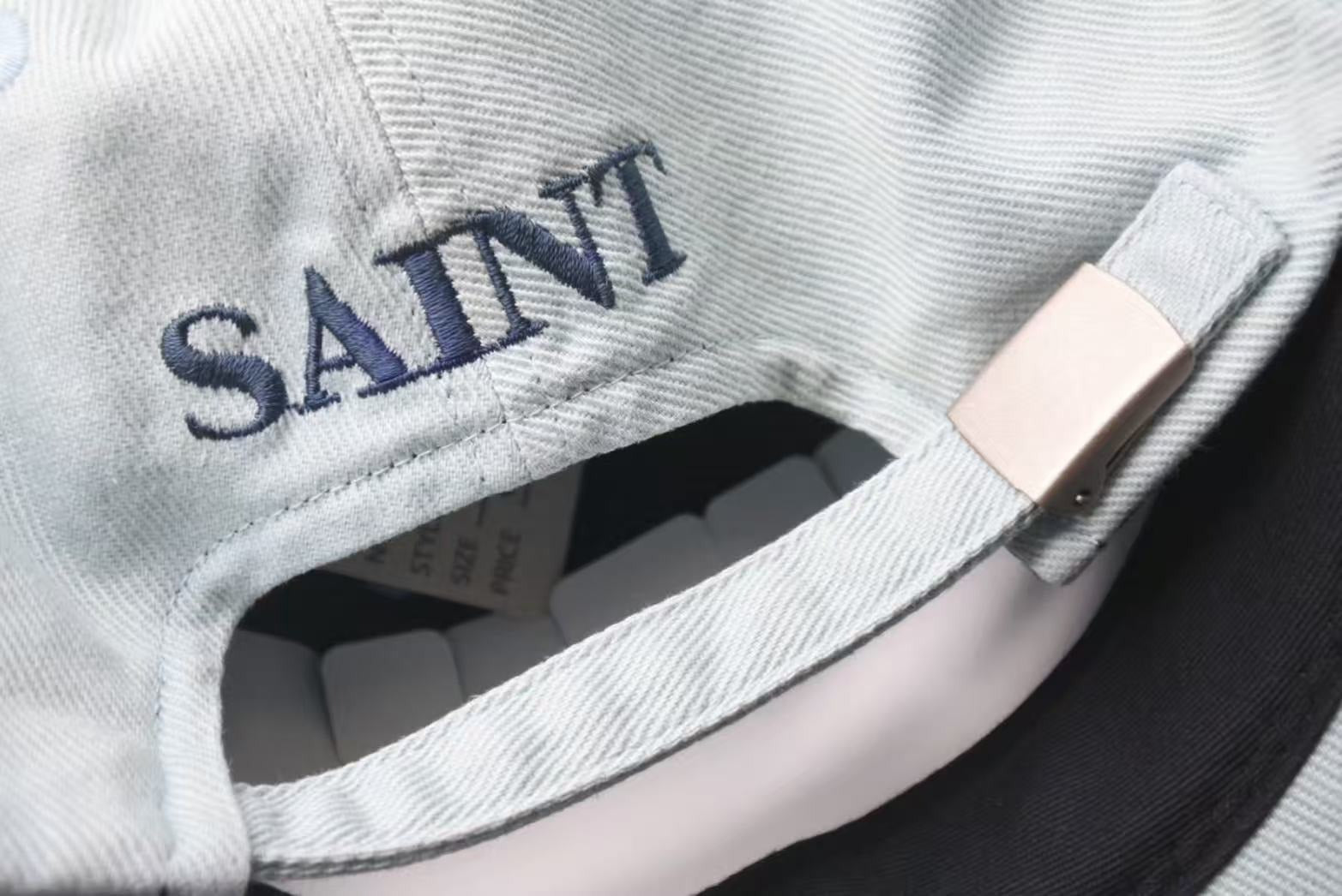 新品未使用 SAINT MICHAEL セントマイケル CAP キャップ SM-HR3-0000-073 ブルー コットン サイズ0/S 4b000610