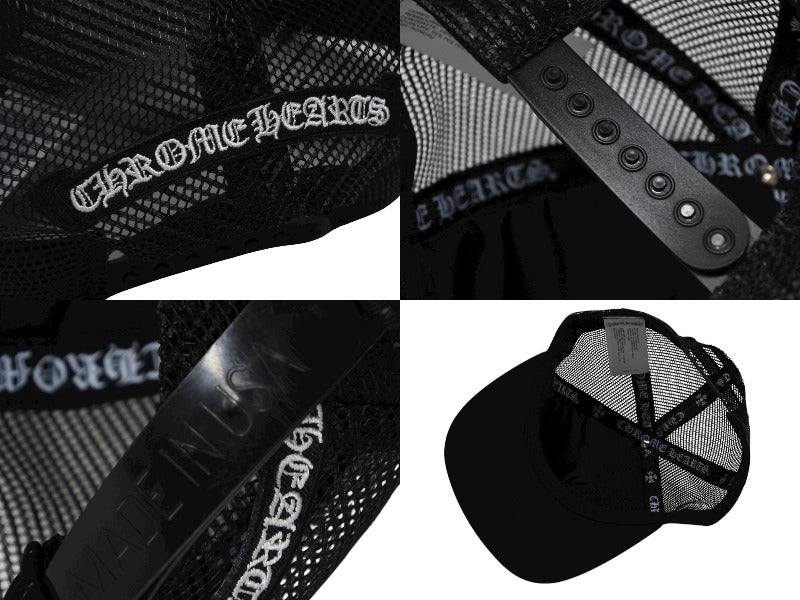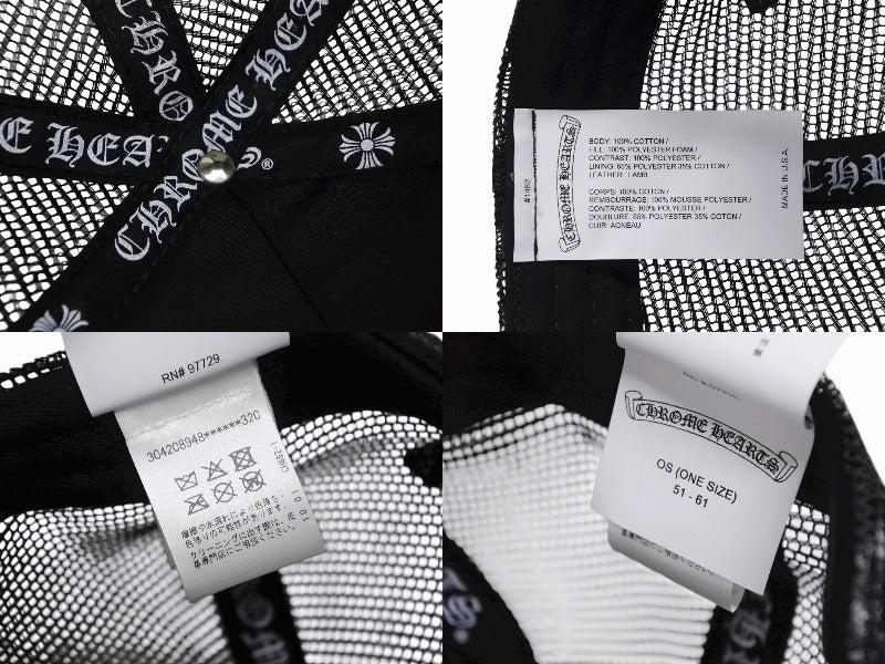 新品未使用 CHROME HEARTS クロムハーツ TRUCKER CAP トラッカーキャップ セメタリーレザーパッチ メッシュキャップ ブラック 中古 4b008861