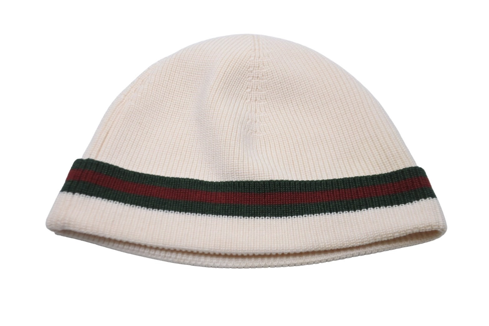 GUCCI グッチ ニット ニット帽 ニットキャップ ビーニー ウール ローゲージ ウェビングライン サイズ L 美品 中古 55356