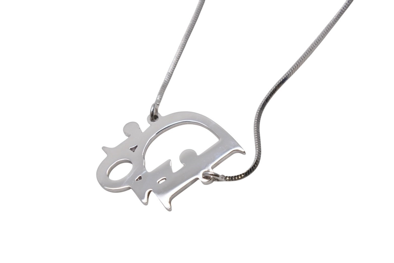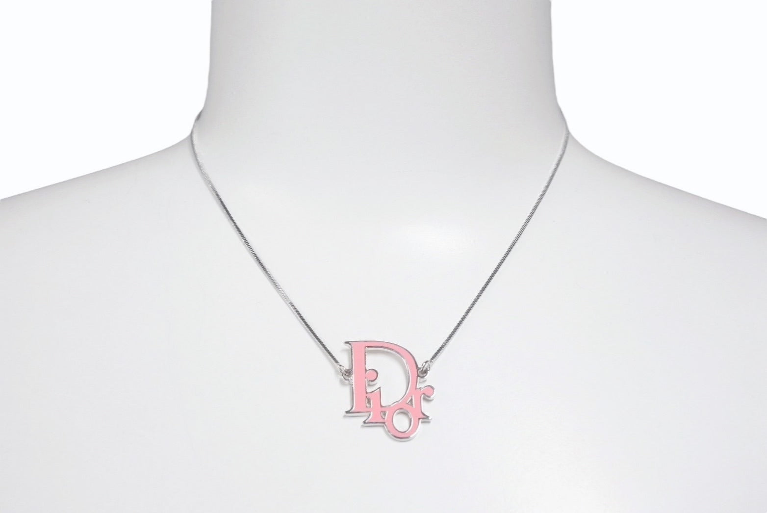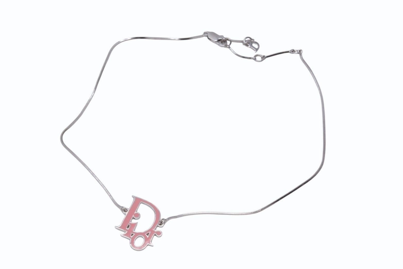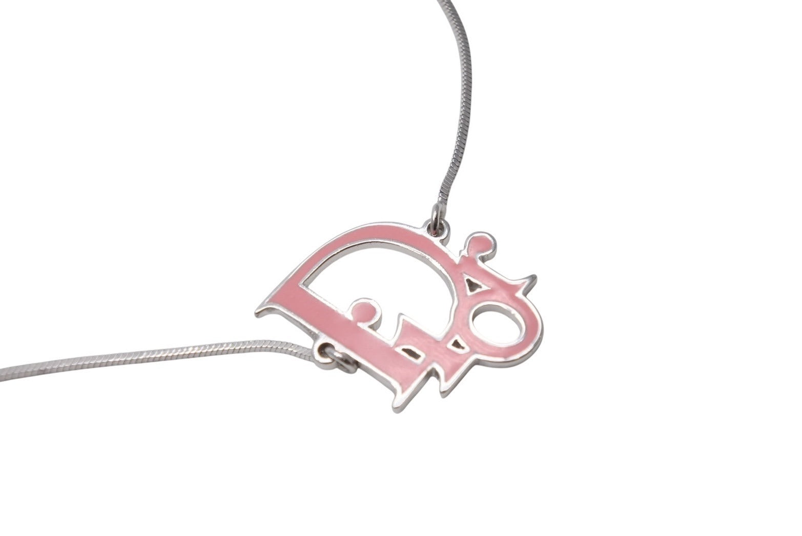 極美品 Christian Dior クリスチャンディオール diorロゴ CD ピンクトロッタープレート ネックレス メタル ピンク シルバー 中古 4b003826