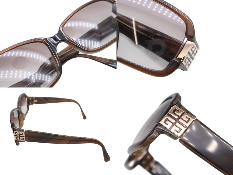 極美品 Givenchy ジバンシー サングラス アイウェア SGV585 ブラウン プラスチック メタル ロゴ金具 中古 4b007429