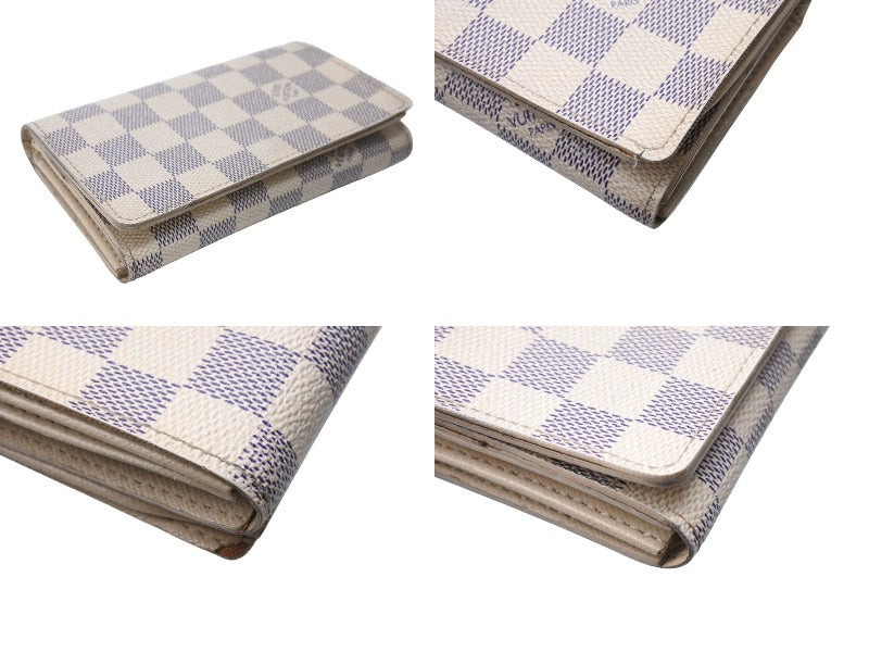 イタリアのリゾート地リビエラの海と砂をイメージして作られたダミエアズールの、マチが二つに分かれたL字ファスナー小銭入れがついた、二つ折り財布。長財布とコンパクト財布の中間サイズ。