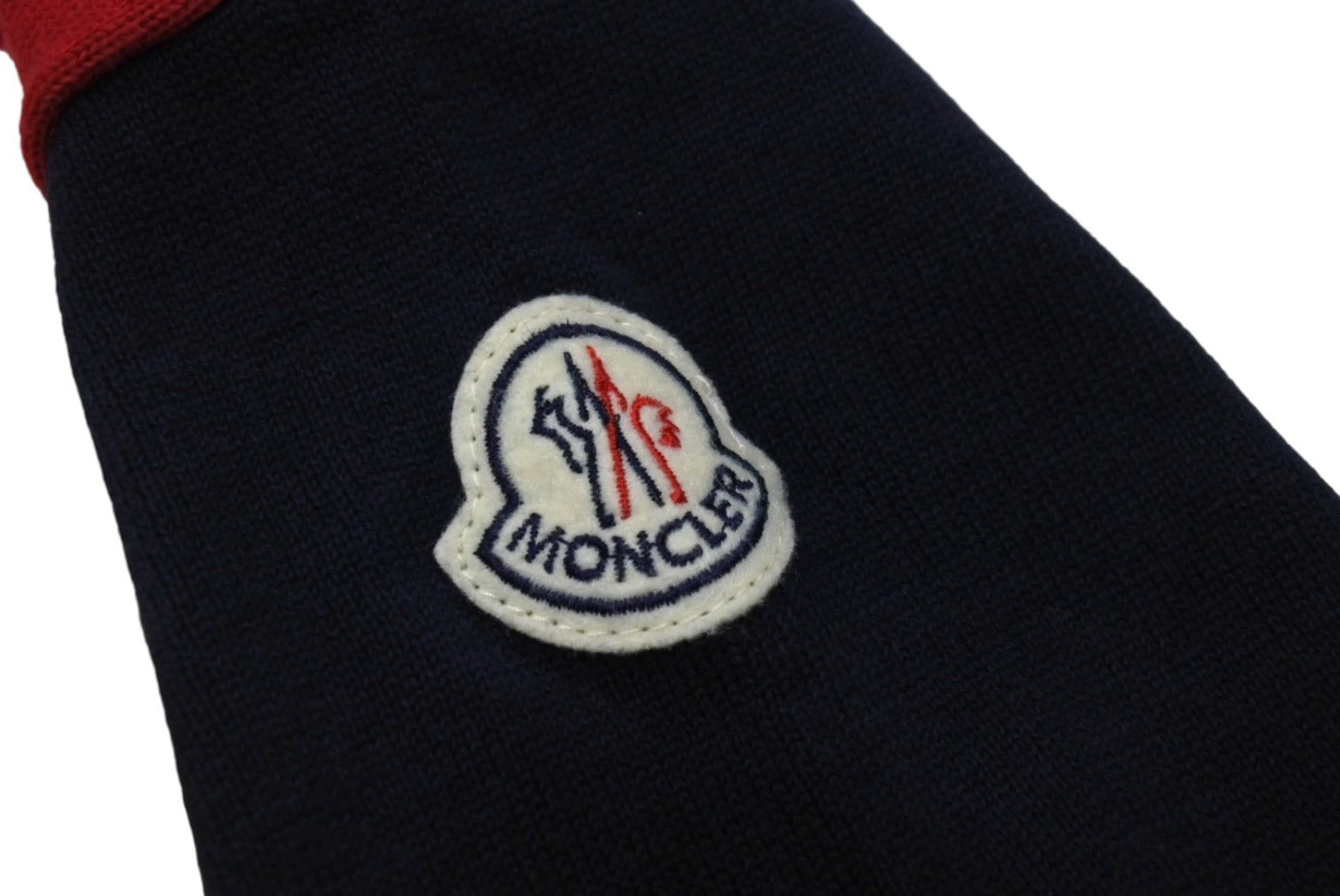 極美品 MONCLER モンクレール ニット トップス サイズXS ボーダー ロゴパッチ ホワイト レッド ネイビー コットン 中古 4c067459