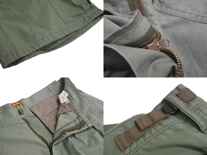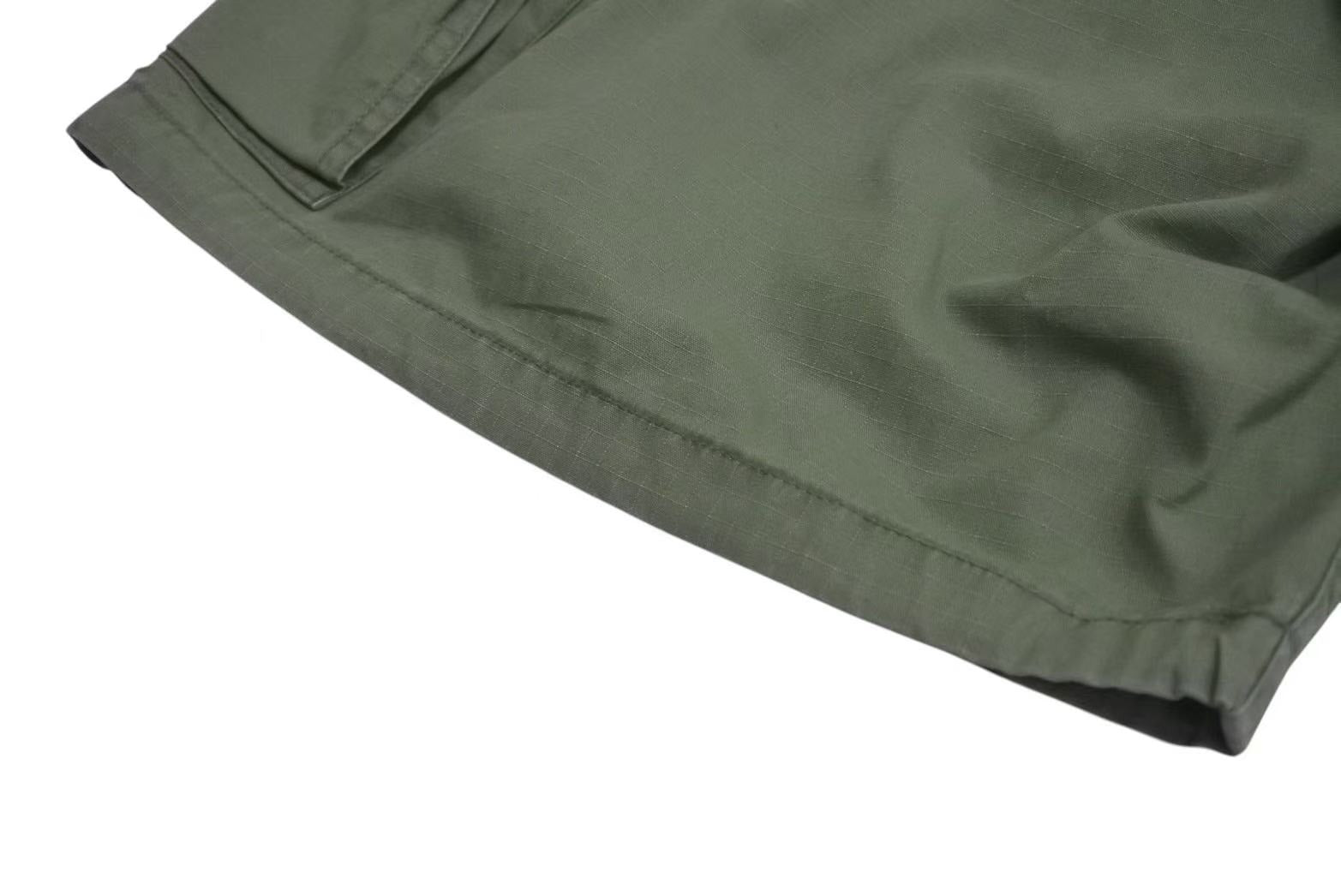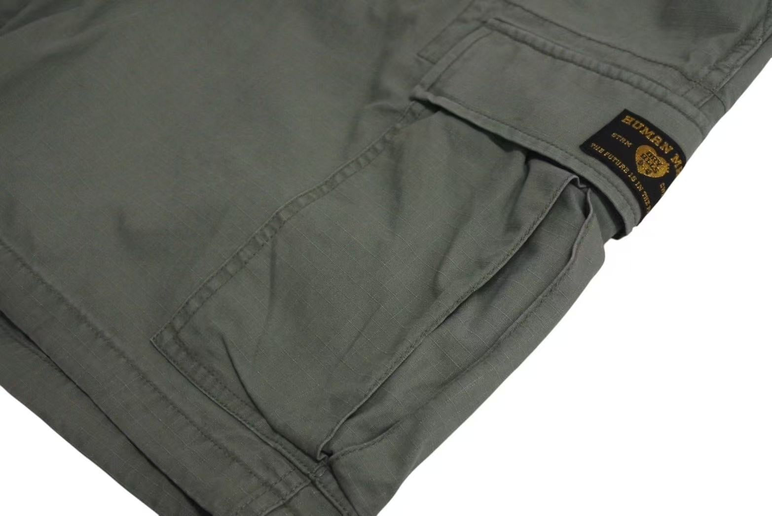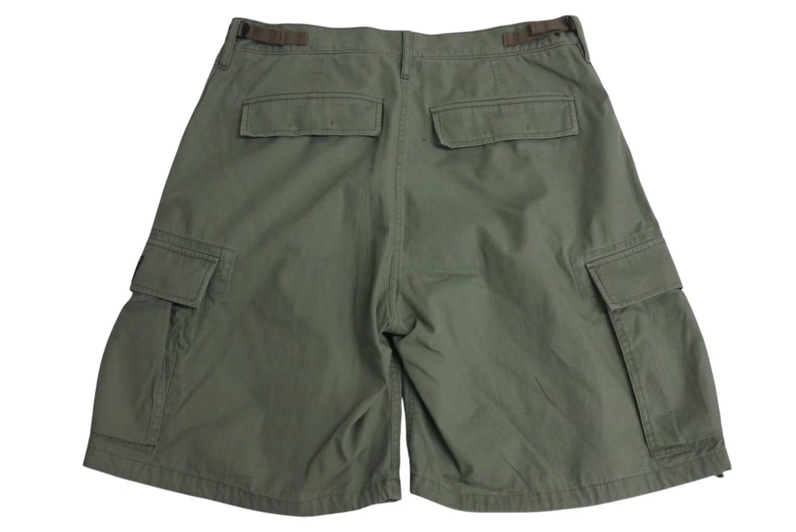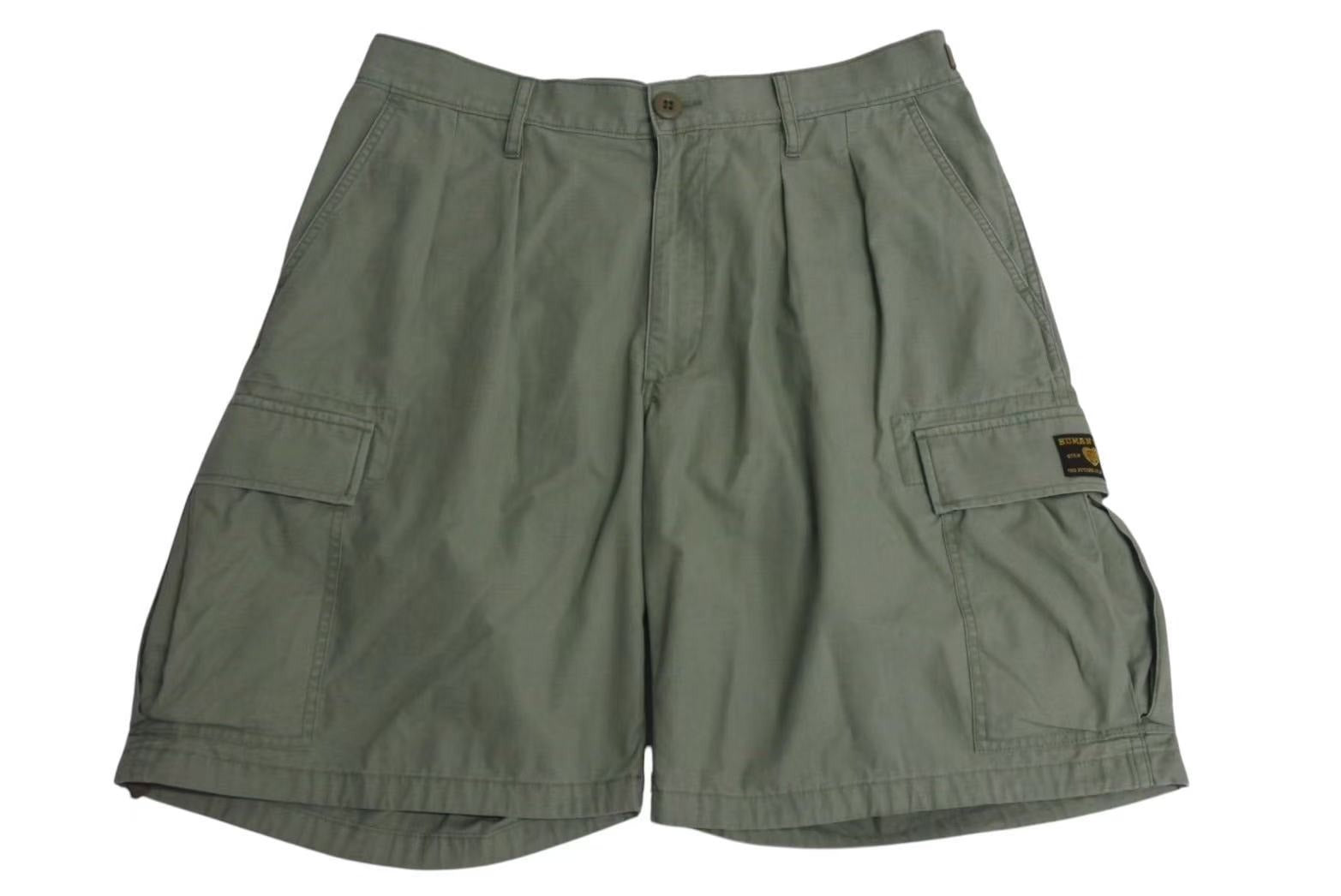 裾幅の広いワイドなカーゴのショーツのつくりで、ポケット部分にロゴのタグが施されたデザインになっています。