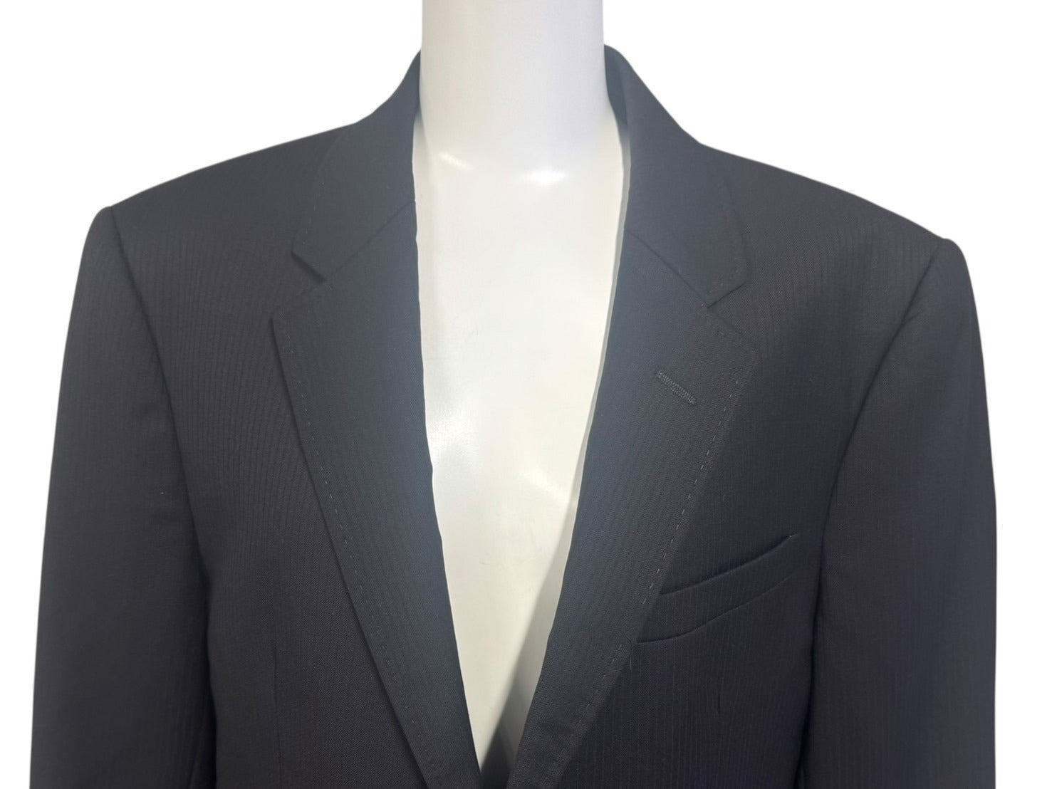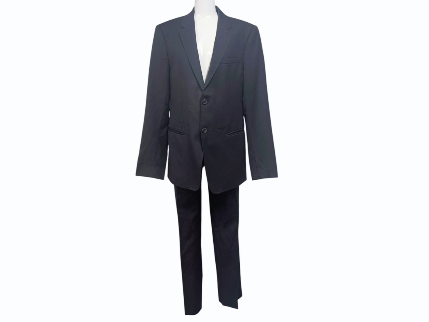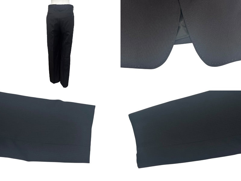 ジャケット内ポケット開口部に少々汚れあり。ジャケット首元タグ下にネームタグがついております。ジャケット品質表示タグに名前がペンで書かれています。パンツウエスト内側に一部黄ばみあり。その他使用感少なく極美品です。