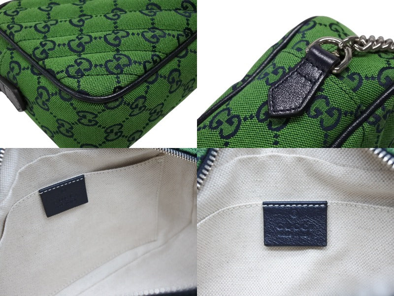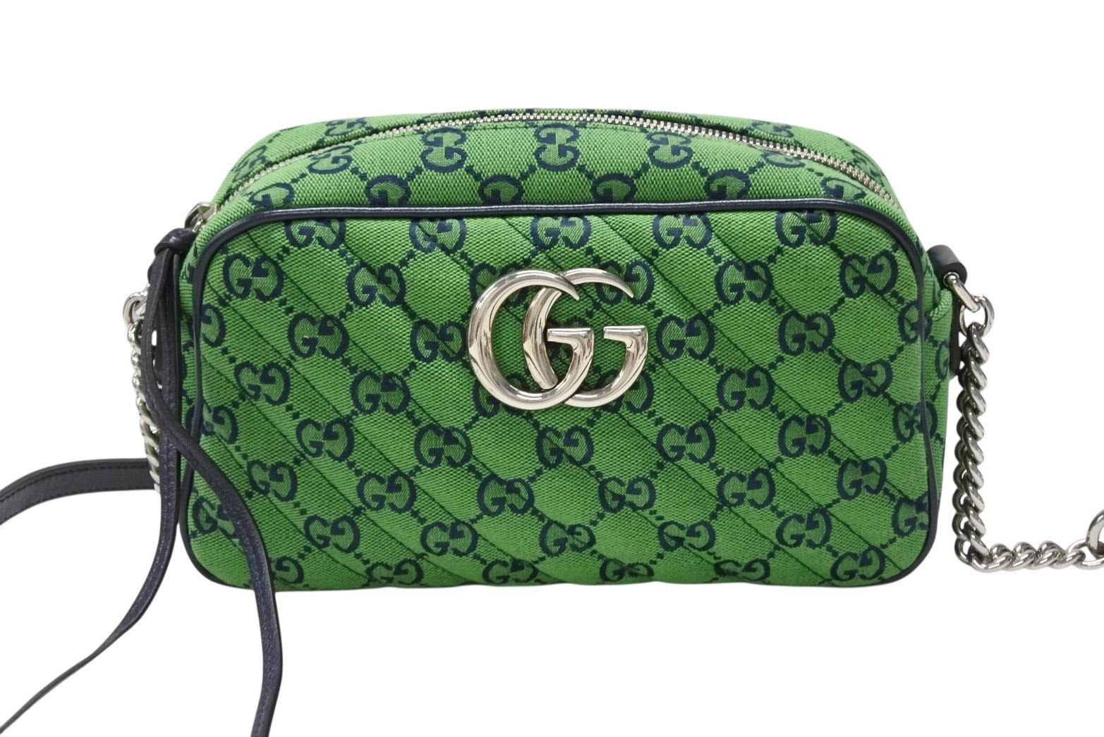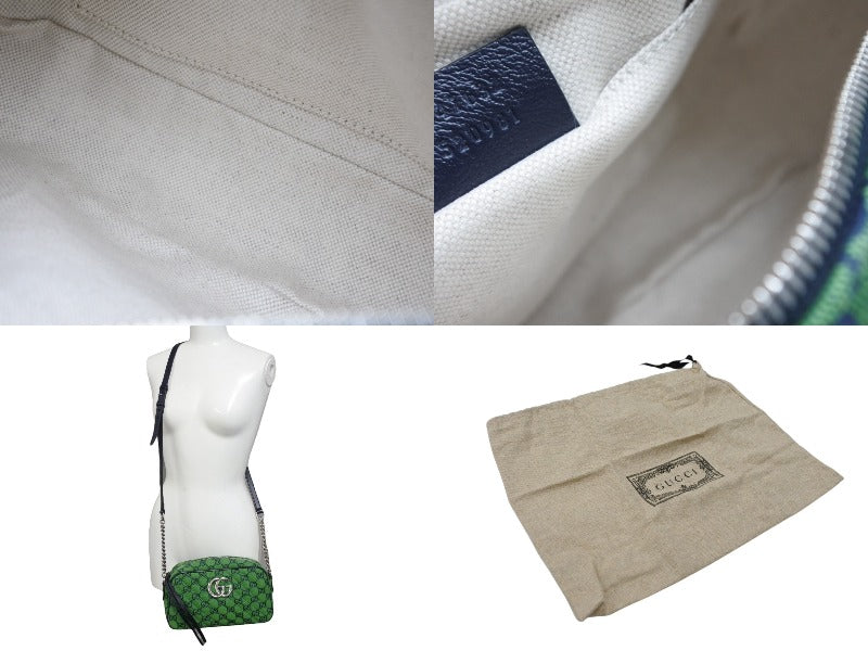 極美品 GUCCI グッチ GGマーモント キルティング スモール ショルダーバッグ 緑 グリーン GG柄 チェーン クロスボディ 肩掛け 447632 中古 4b007250