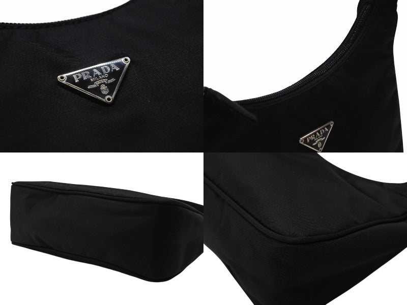 極美品 PRADA プラダ ホーボー ハンドバッグ ワンショルダーバッグ 三角ロゴプレート MV519 ブラック ナイロン 中古 4b007728
