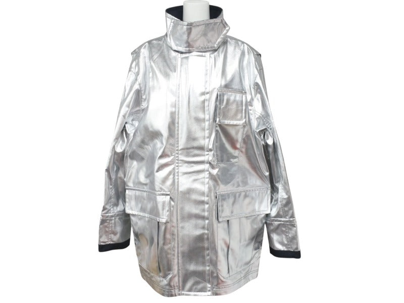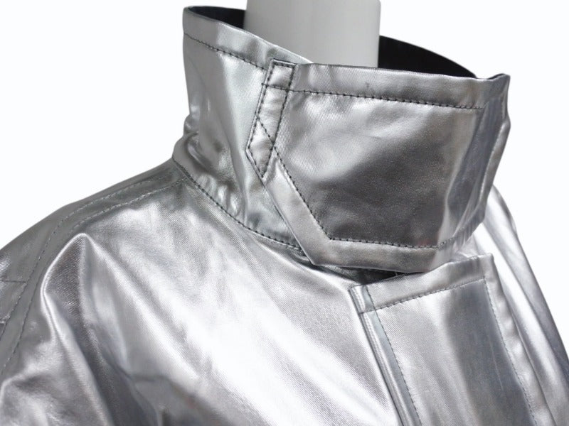 比翼デザインのジャケットになります。シルバーカラーでスタイリングのアクセントになります。