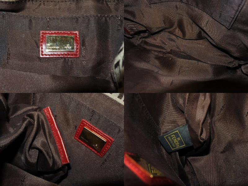 FENDI フェンディ ズッキーノ トートバッグ ハンドバッグ 8BH139 レザー キャンバス ベージュ レッド ゴールド金具 美品 中古 4b005139