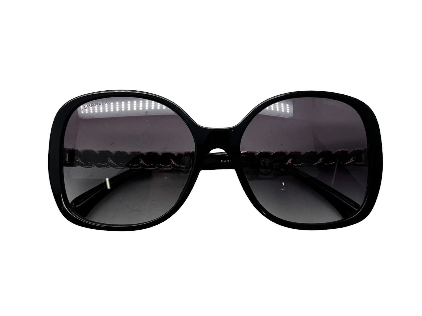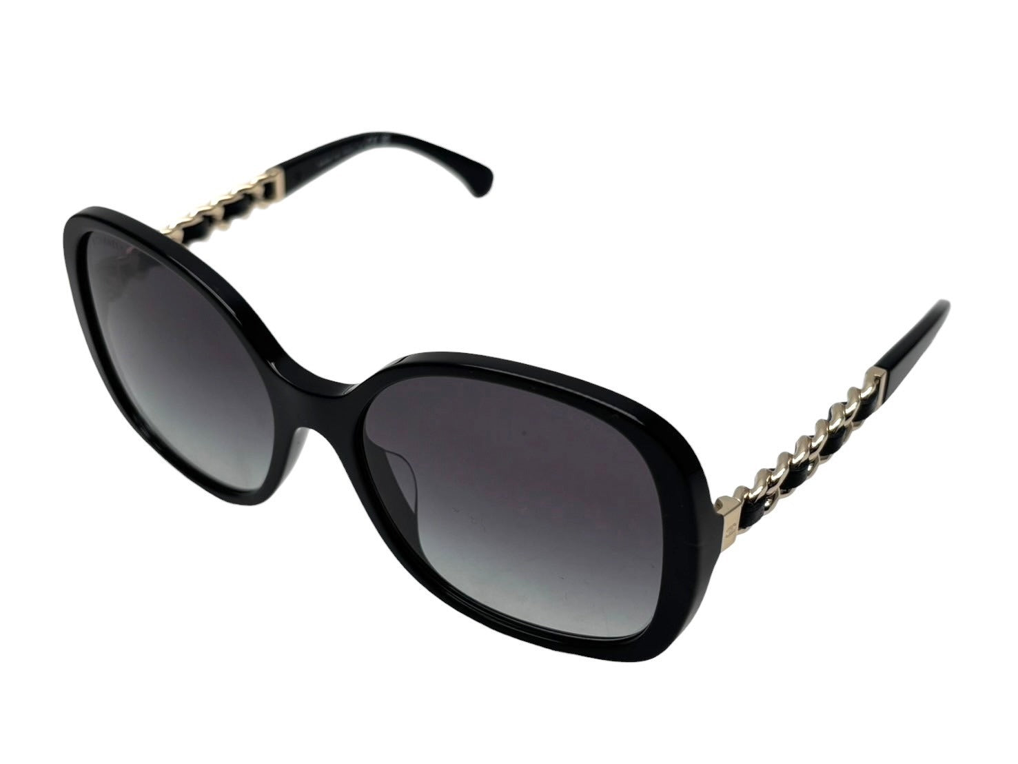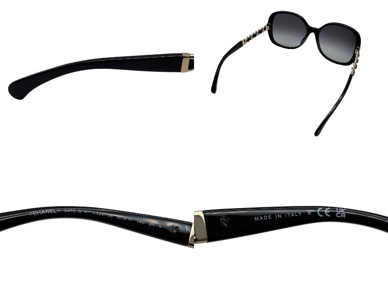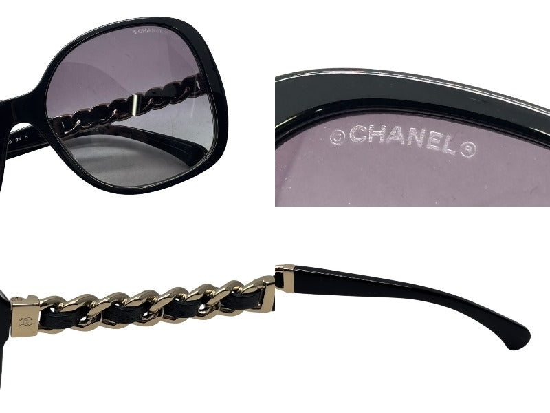 極美品 CHANEL シャネル サングラス サイドチェーン ココマーク 570-Q-A アセテート ブラック ゴールド金具 中古 4b007579