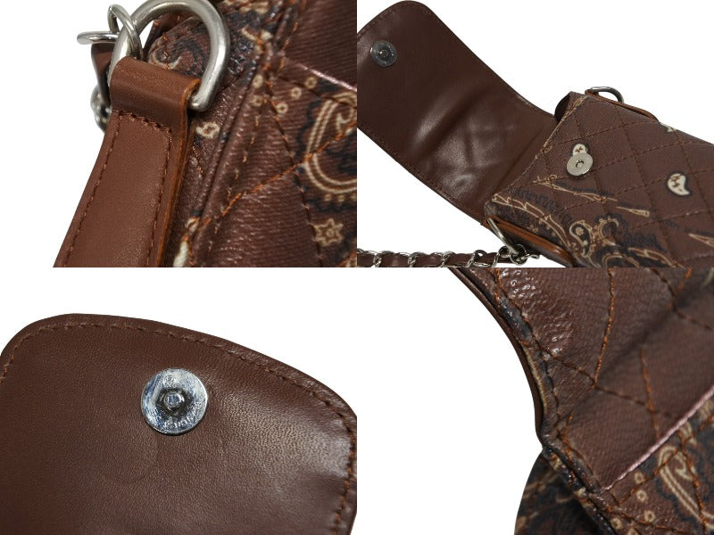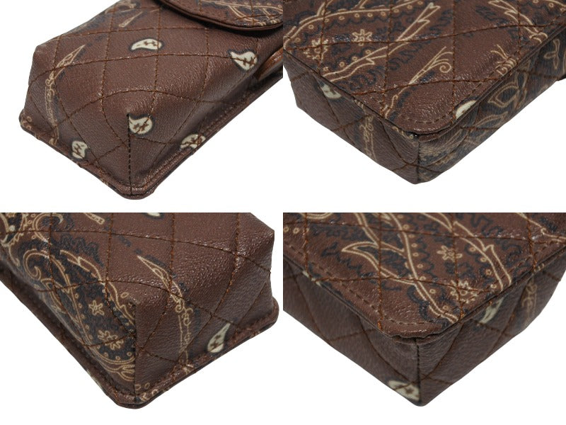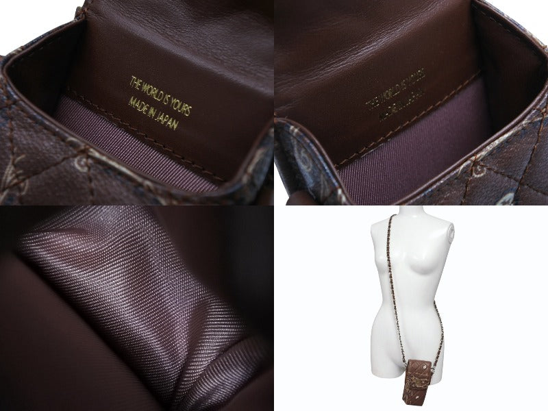 極美品 THE WORLD IS YOURS ザ ワールド イズ ユアーズ ペイズリー キルティング ミニ ポーチ ショルダー レザー ブラウン 中古 4b008320