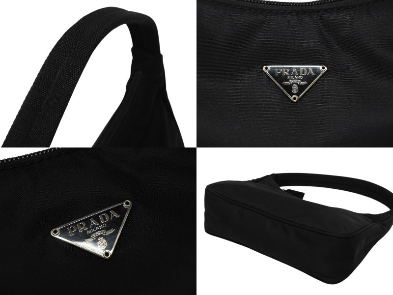 極美品 PRADA プラダ ホーボー ハンドバッグ ワンショルダーバッグ MV515 トライアングルロゴ ナイロン ブラック 中古 4b009197