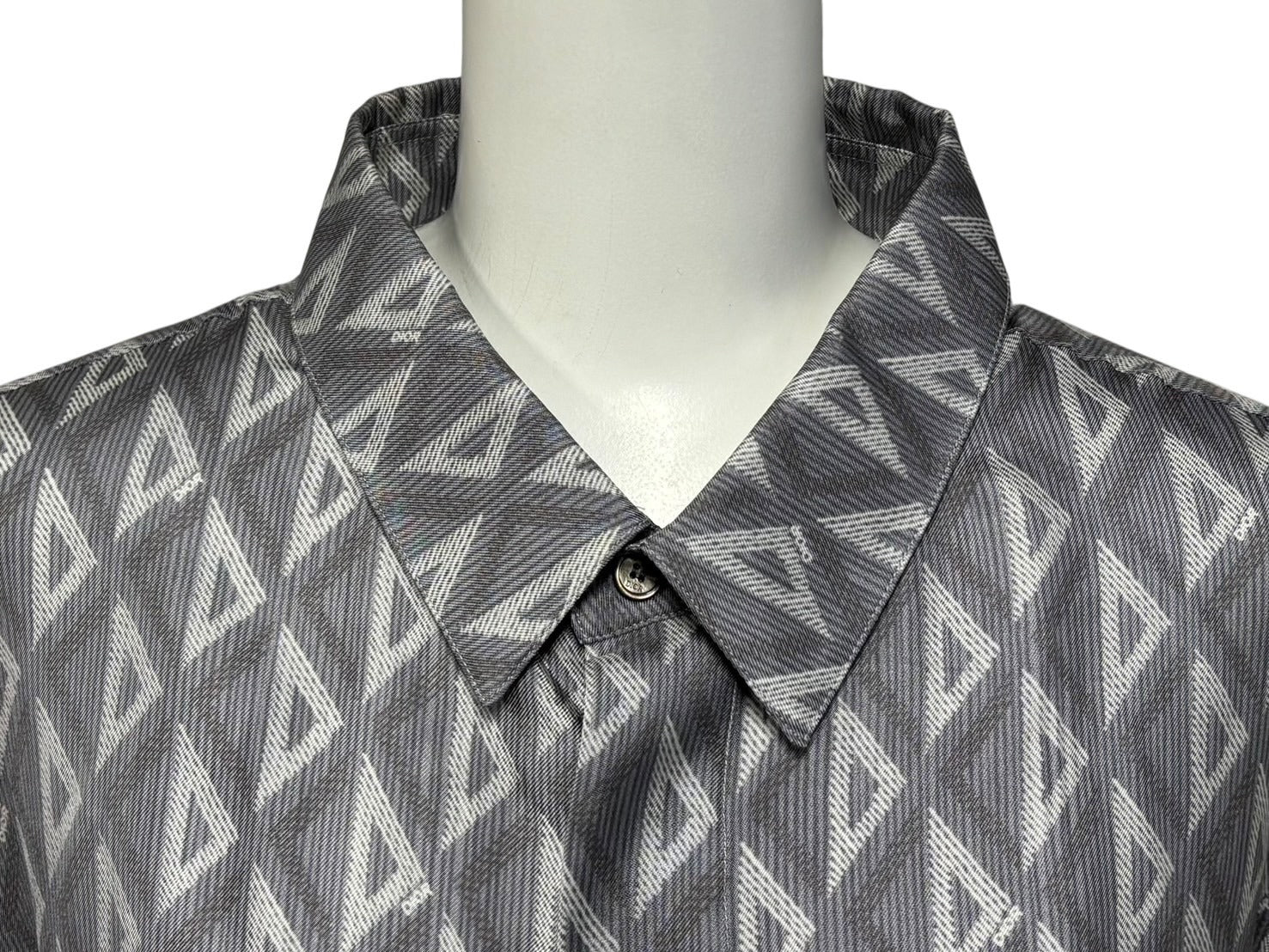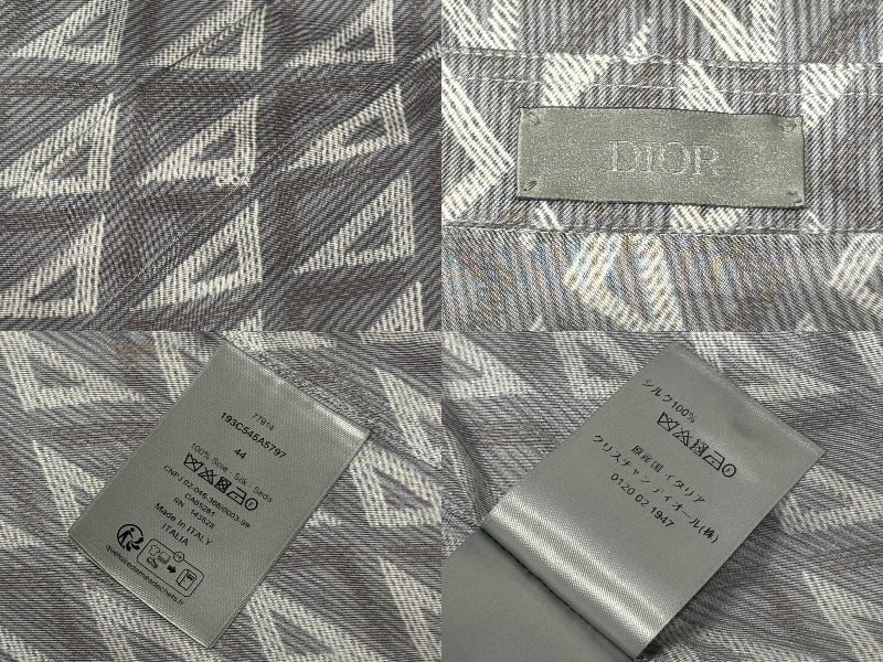 極美品 Christian Dior クリスチャンディオール 半袖 比翼ボタンシャツ 193C545A5797 サイズ44 シルク グレー 中古 4b009235