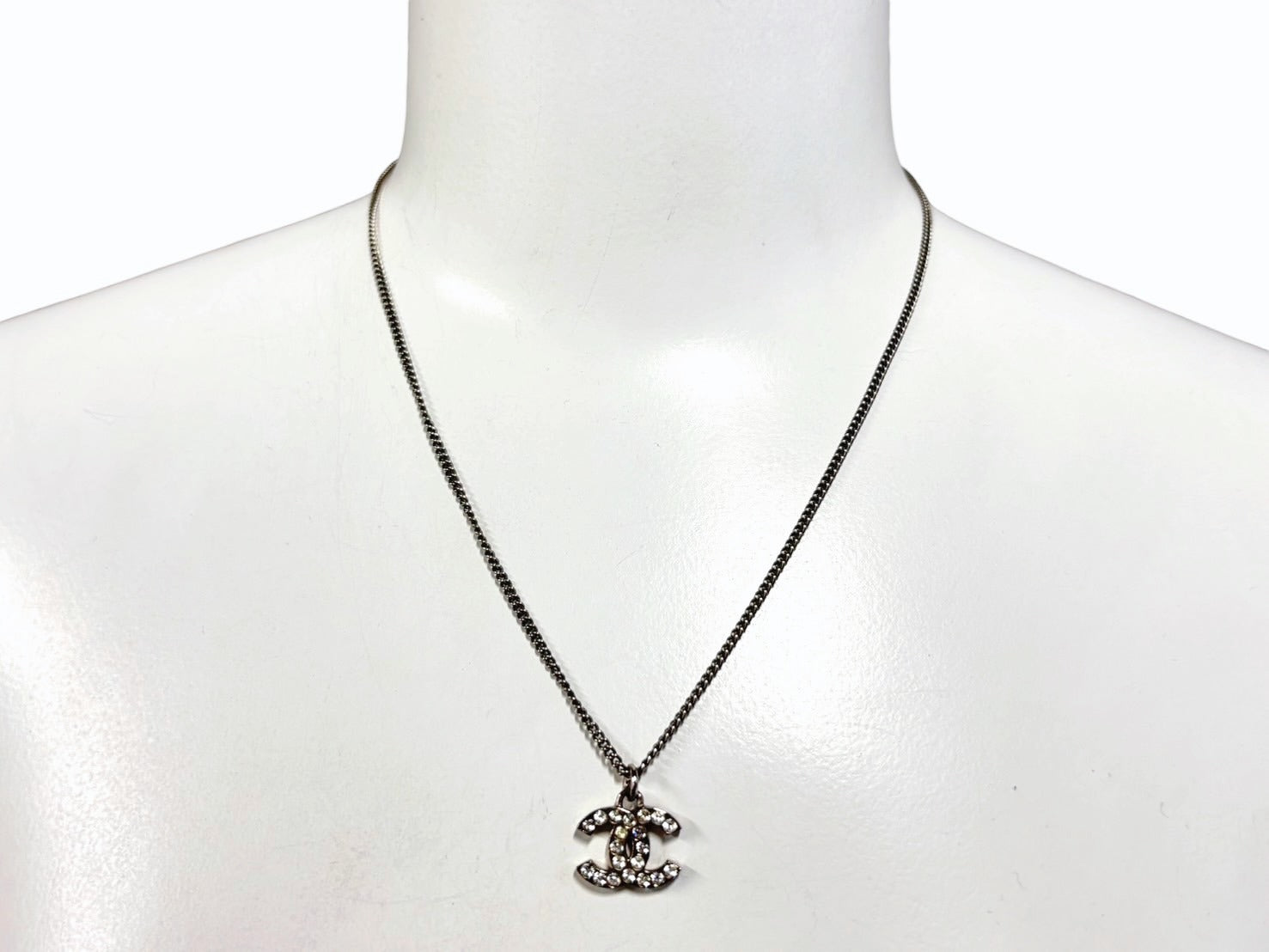 CHANEL シャネル ココマーク ネックレス 重量約5g F13V刻印 全長約43cm メタル ラインストーン クリア シルバー 美品 中古 4b009278