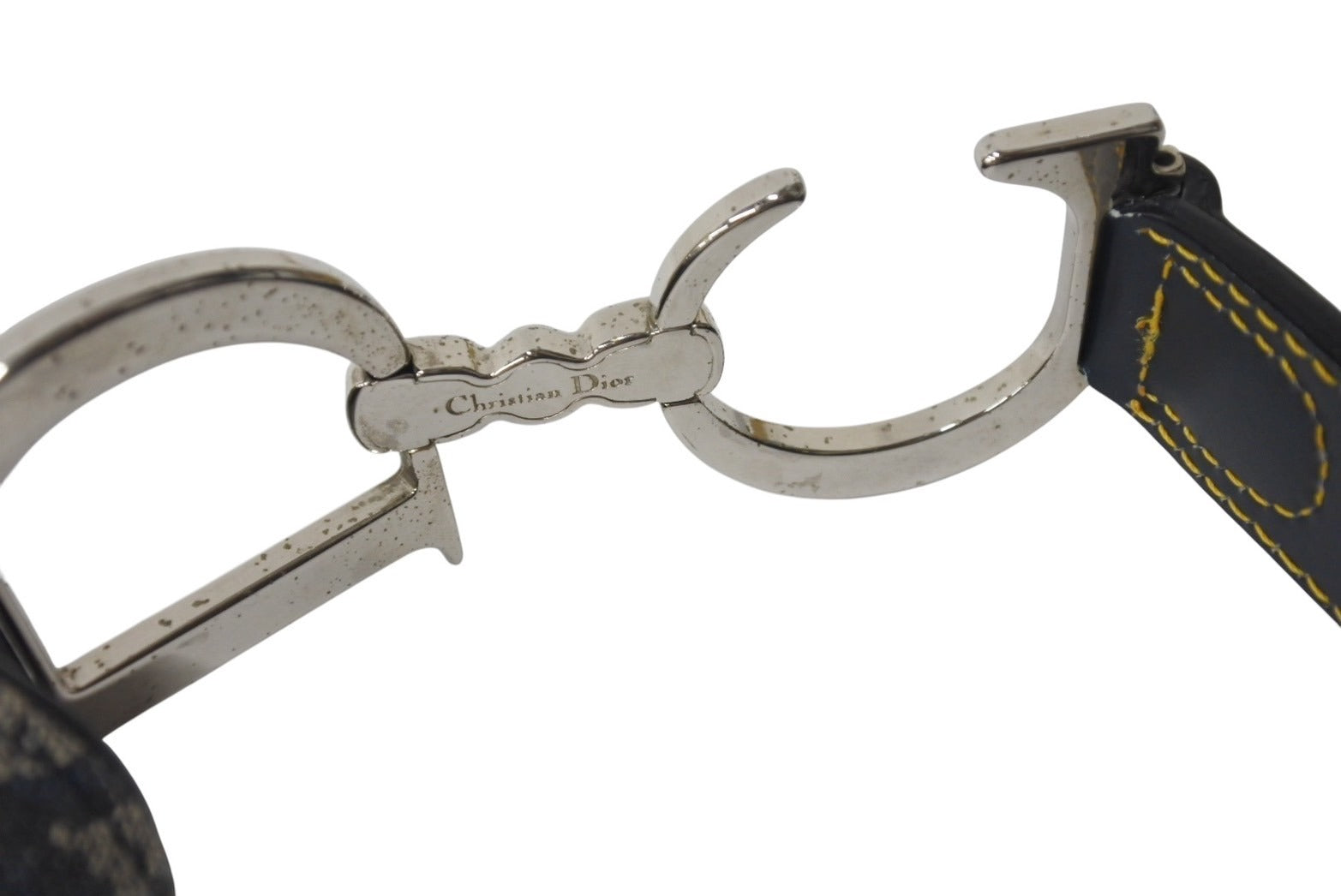 極美品 Christian Dior クリスチャンディオール トロッター サドルバッグ ブラック ガリアーノ期 シルバー金具 ワンショルダー ロゴ 中古 4b000130
