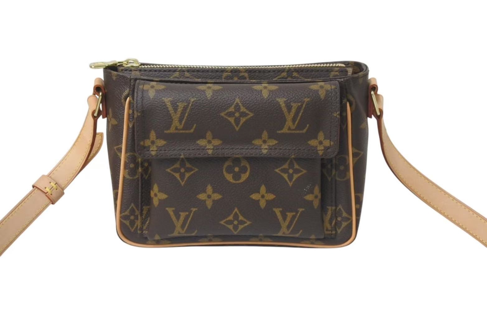 新品同様 LOUIS VUITTON ルイヴィトン ショルダーバッグ M51165 ヴィバシテPM ブラウン モノグラム ゴールド金具 中古 4b001184