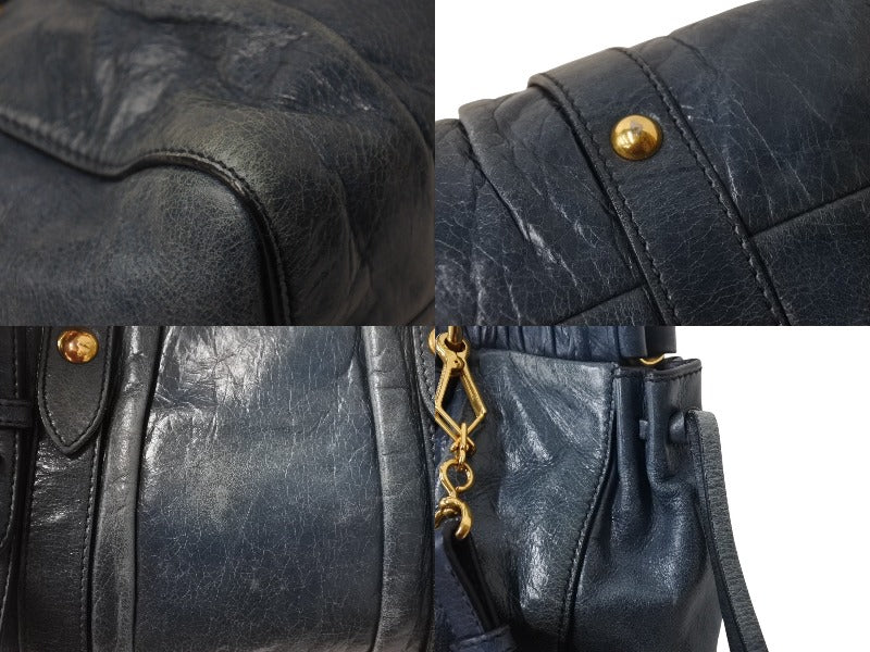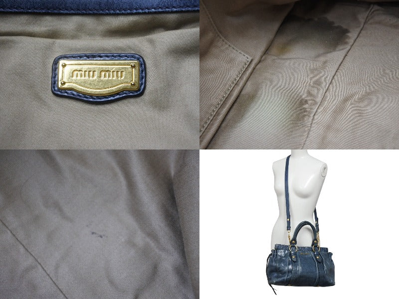 表面スレ、ヤケ、シワあり。角スレあり。ハンドルにスレ、パイピング箇所に生地浮きあり。金具にスレ、小傷あり。内側シミ、汚れあり。中古品としてご使用いただける状態です。