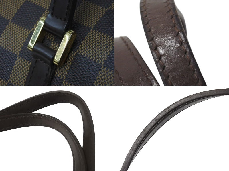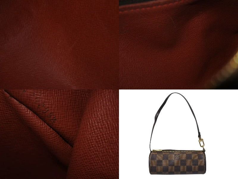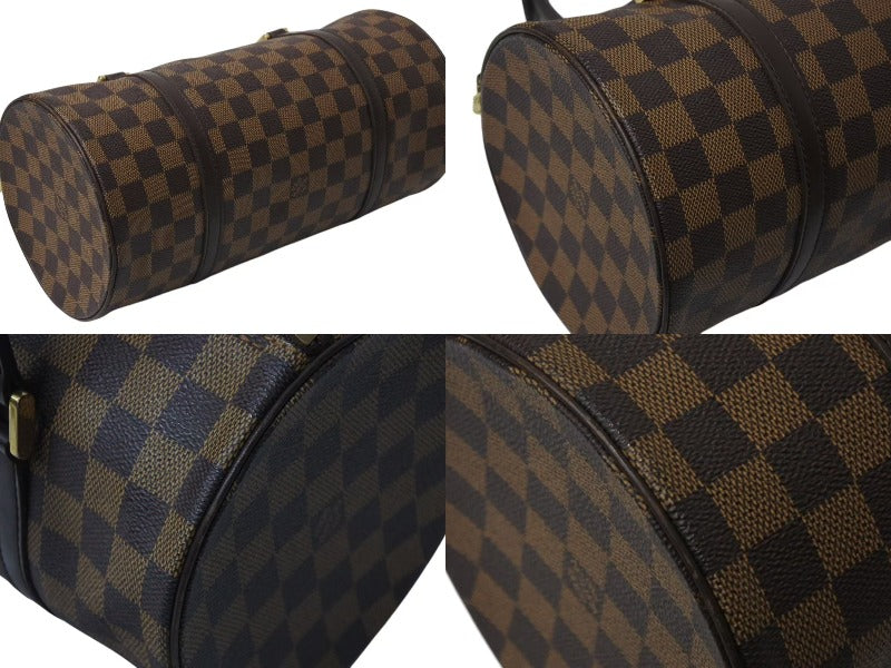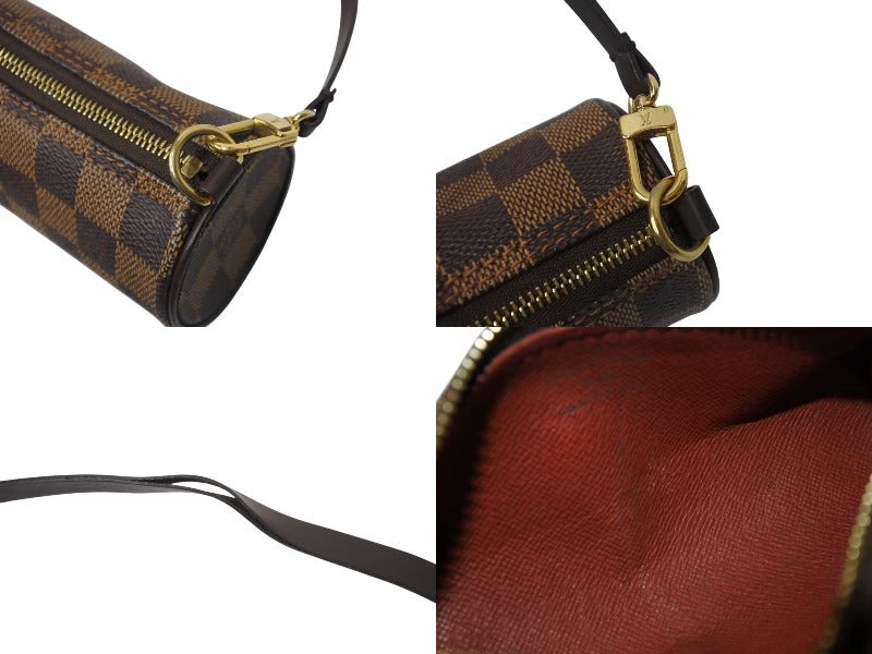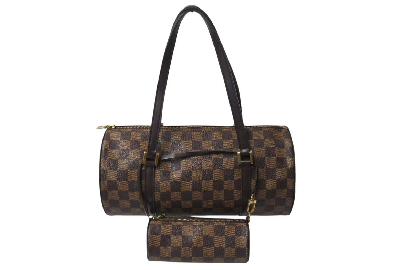 落ち着いた優美さと幾何学的なモチーフが魅力的なダミエラインの、筒型のデザインがおしゃれなバッグ。ミニポーチつき。