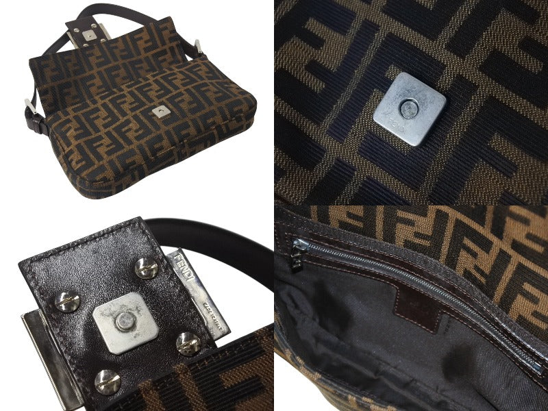 FENDI フェンディ マンマバケット ワンショルダーバッグ 26424 ズッカ柄 ブラウン キャンバス レザー シルバー金具 美品 中古 4b002045