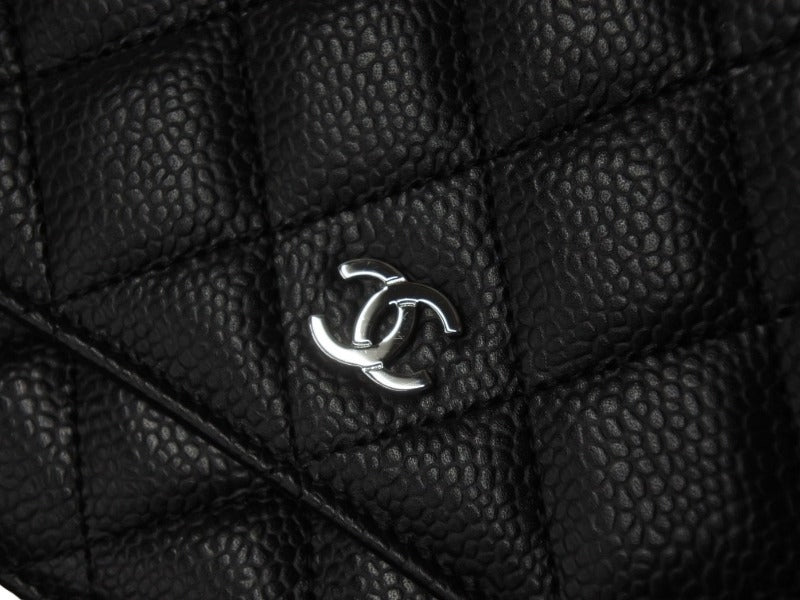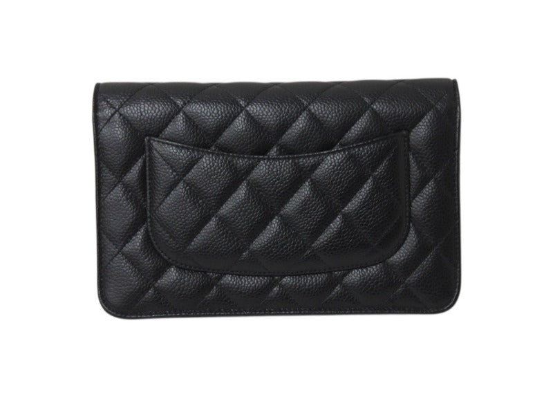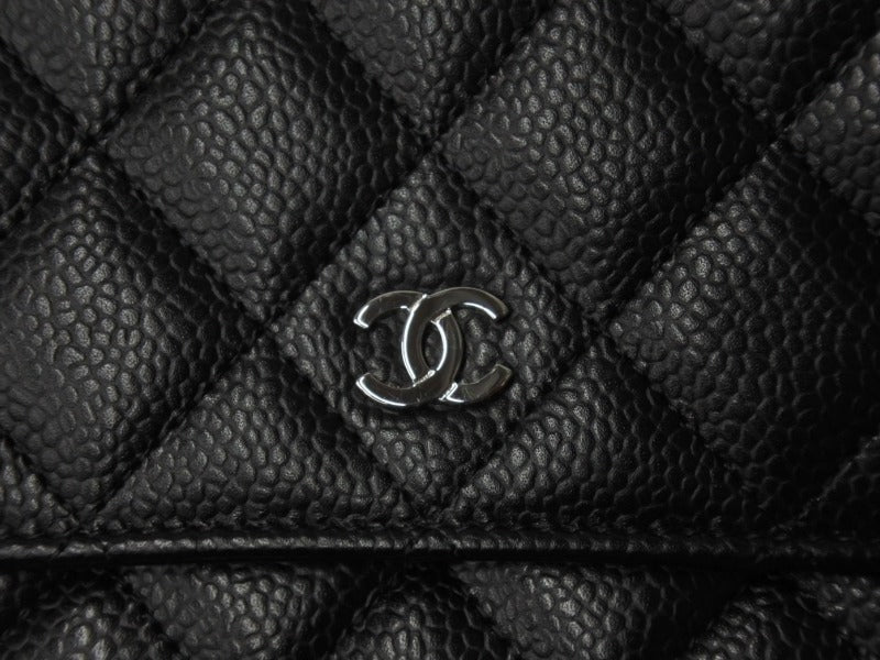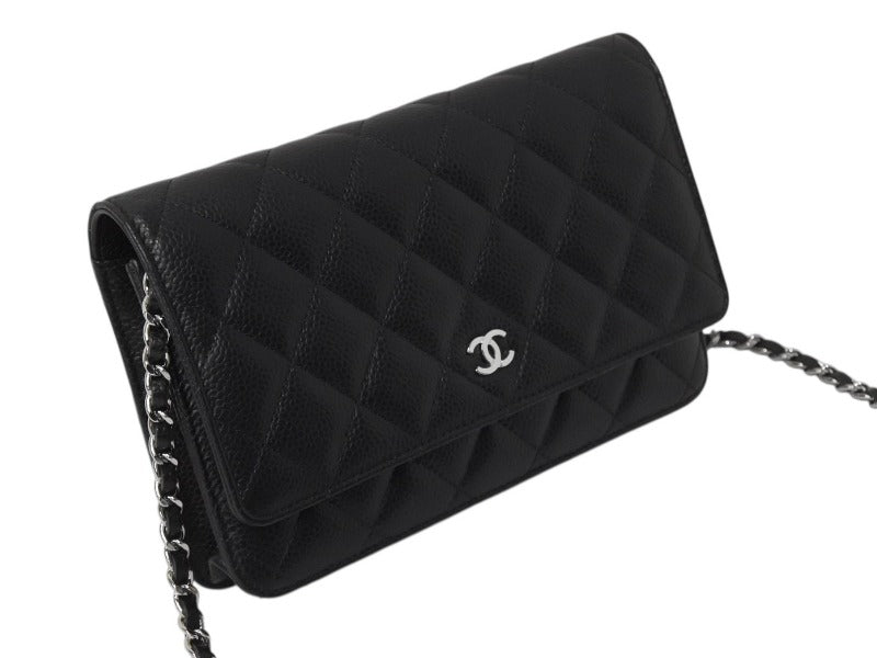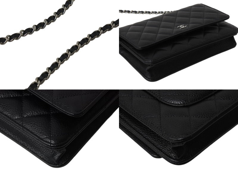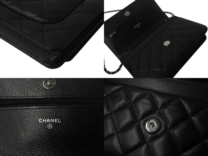 極美品 CHANEL シャネル チェーンウォレット ショルダーバッグ ランダム番台 ココマーク キャビアスキン キルティング ブラック 中古 4b002801