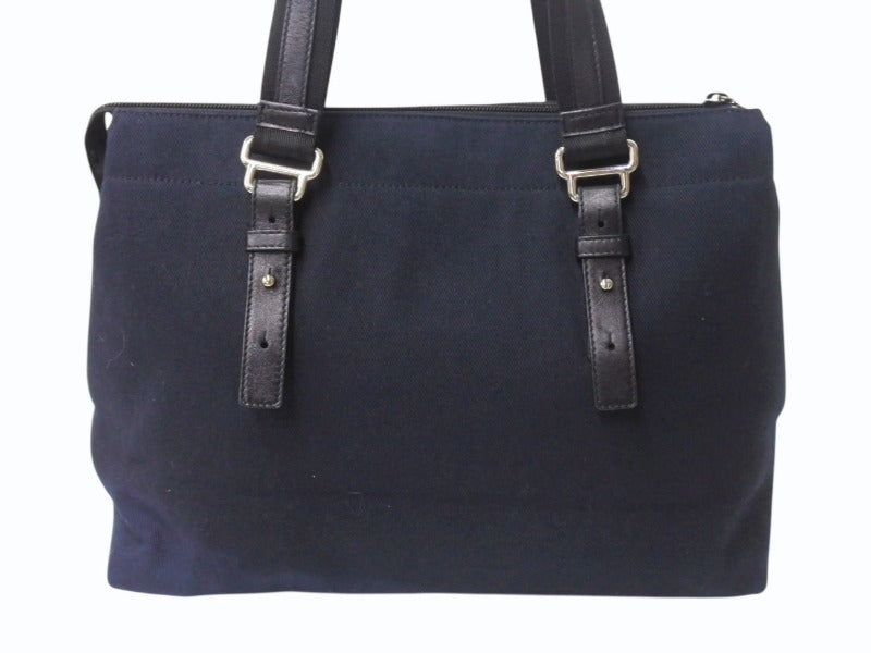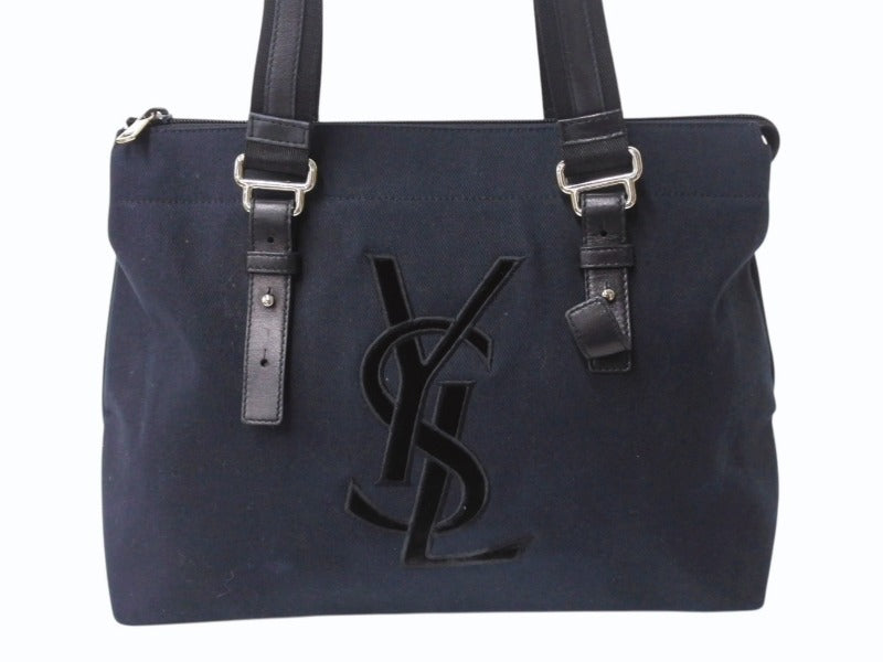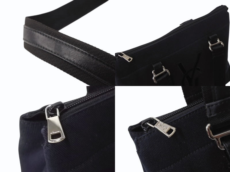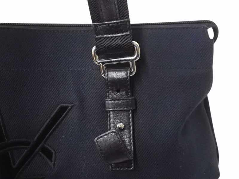 YVES SAINT LAURENT イヴサンローラン カハラ トートバッグ キャンバス レザー ブラック シルバー金具 美品 中古 4b002889