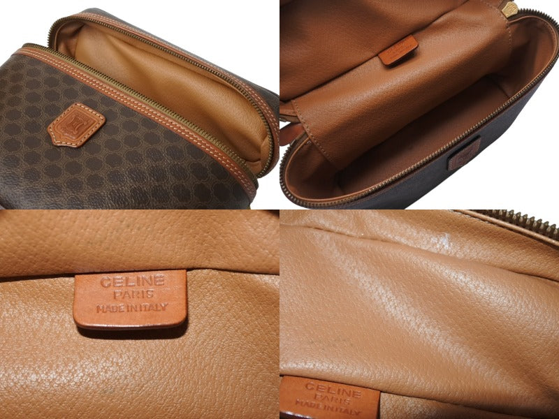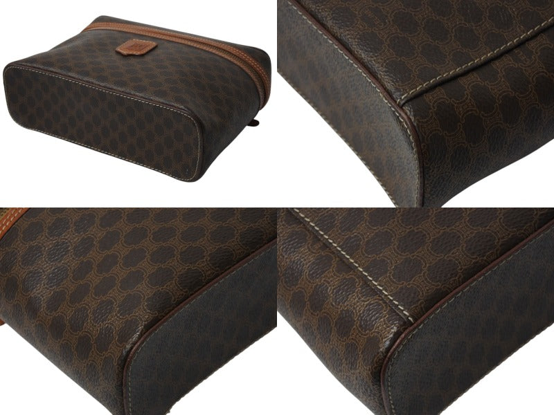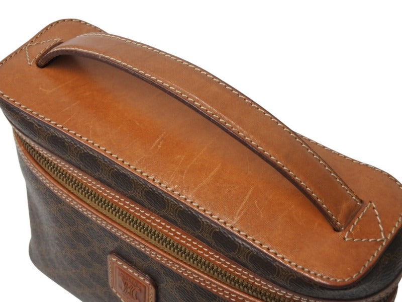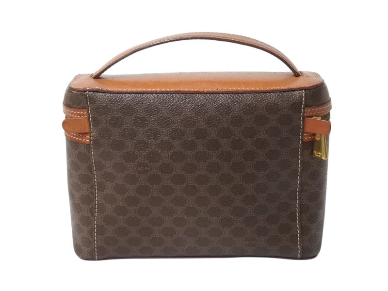 CELINE セリーヌ マカダム柄 ハンドバッグ バニティバック 化粧ポーチ ブラウン ゴールド金具 M94 美品 中古 4b002974