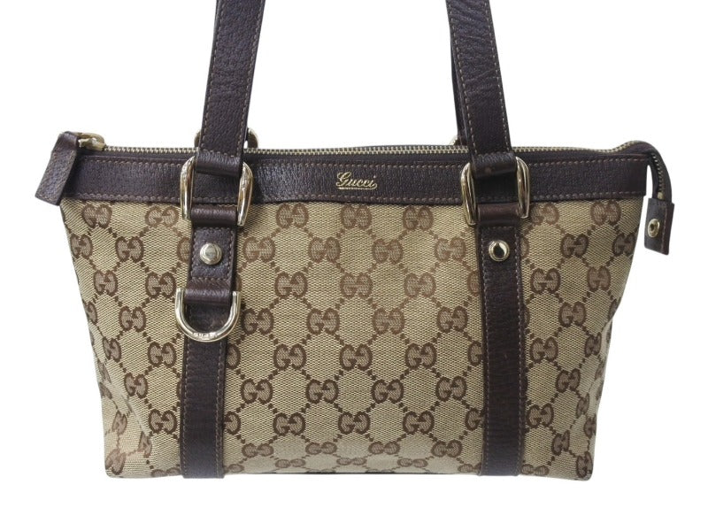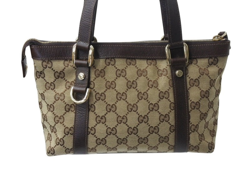 GUCCI グッチ ハンドバッグ 141471 ブラウン ベージュ GGスプリームキャンバス レザー ゴールド金具 美品 中古 4b002987