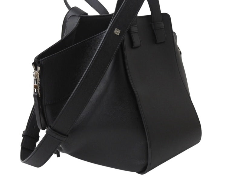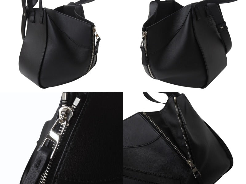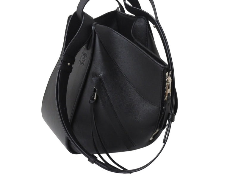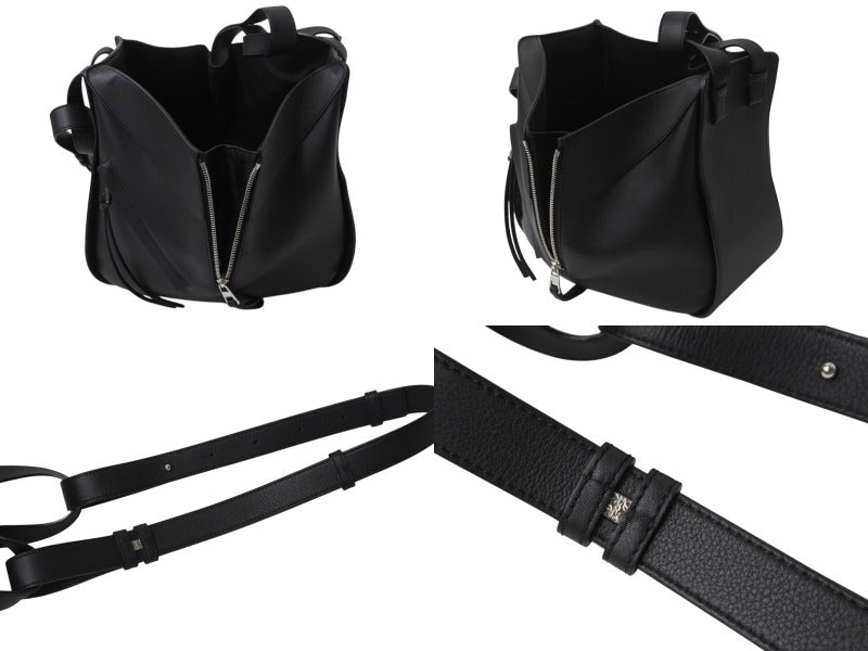 極美品 LOEWE ロエベ ハンモックバッグ スモール ショルダーバッグ エンボス加工 2way レザー ブラック シルバー金具 中古 4b003003