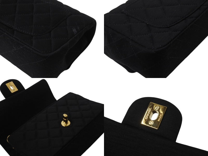 CHANEL シャネル ミニマトラッセ シングルフラップ シングルチェーン 19番台 コットンジャージー ブラック ゴールド金具 美品 中古 4b003011