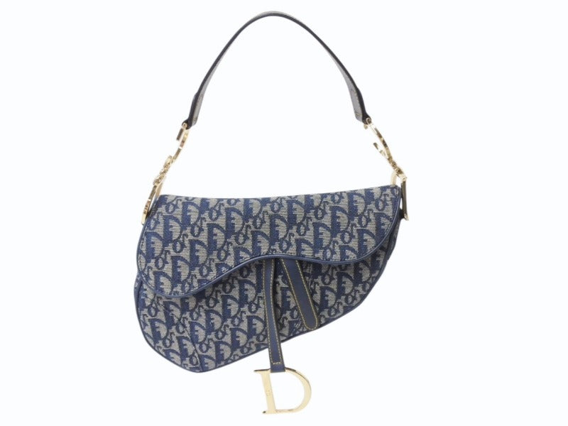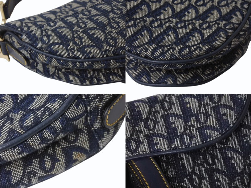 Christian Dior クリスチャンディオール サドルバッグ ワンショルダーバッグ トロッター ネイビー ガリアーノ期 中古 4b003271