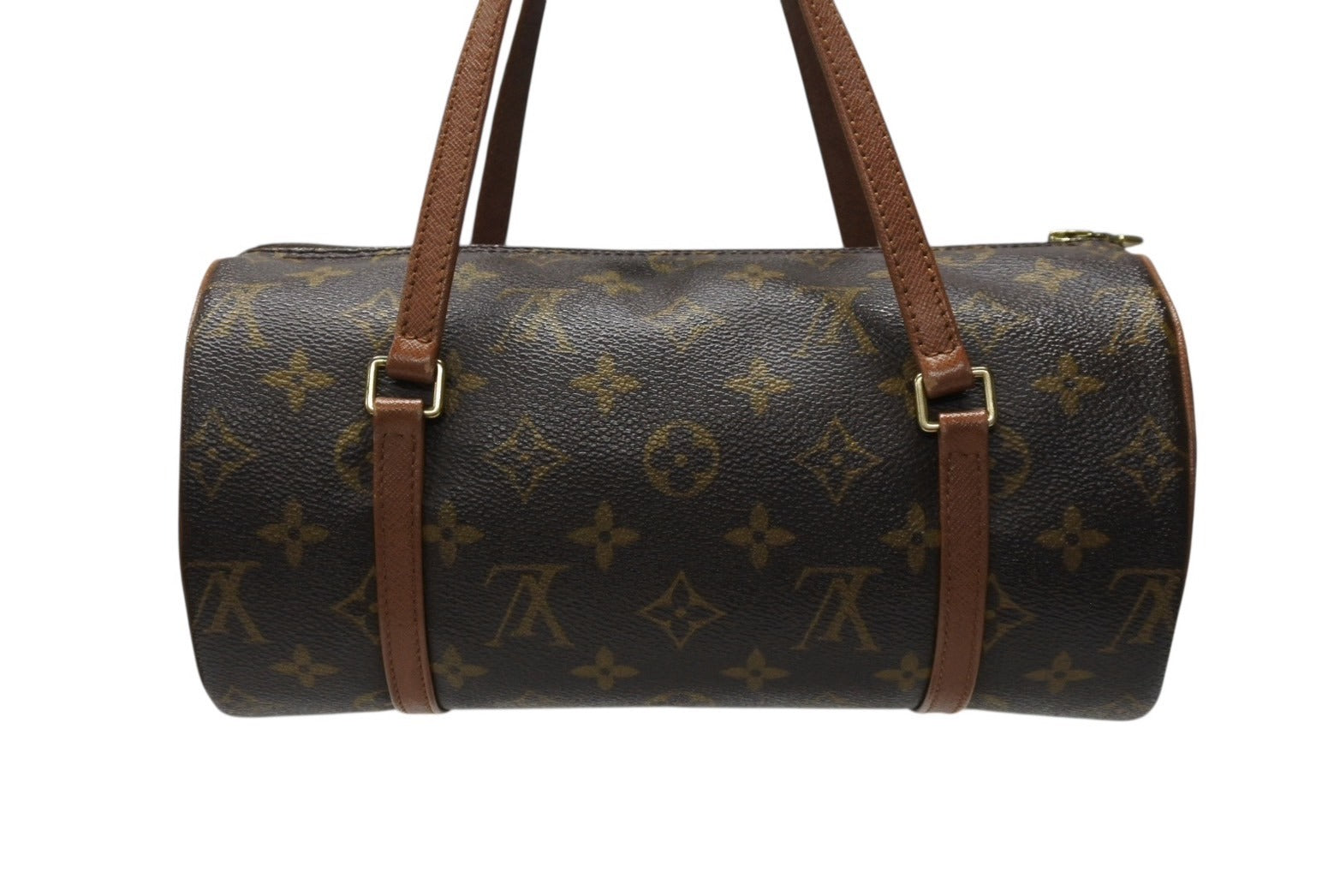 伝統的なモノグラム キャンバスとモダンなデザインがひとつになった、筒型のキュートなフォルムのハンドバッグです。コンパクトなサイズ感でデイリーにお使いいただけます。