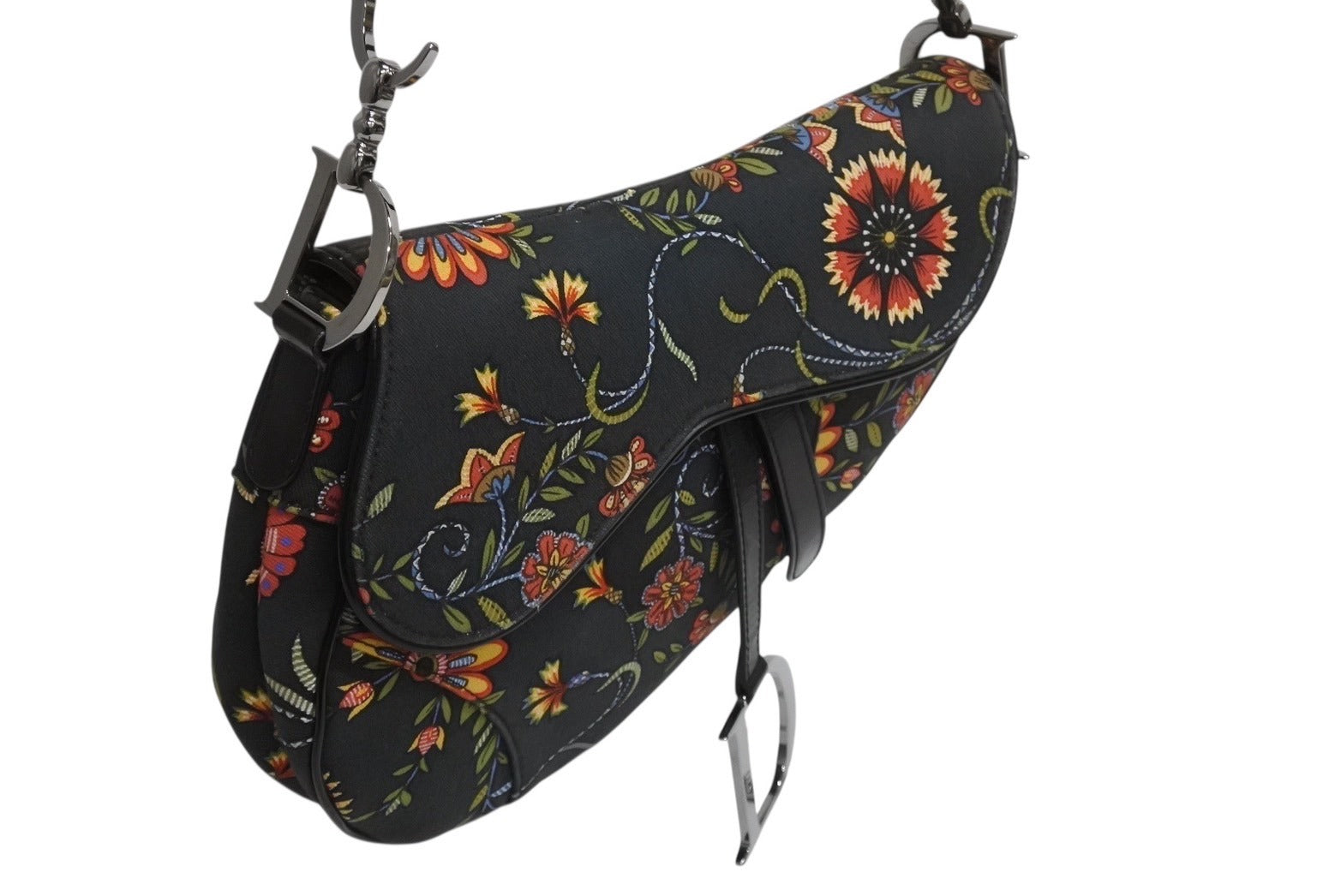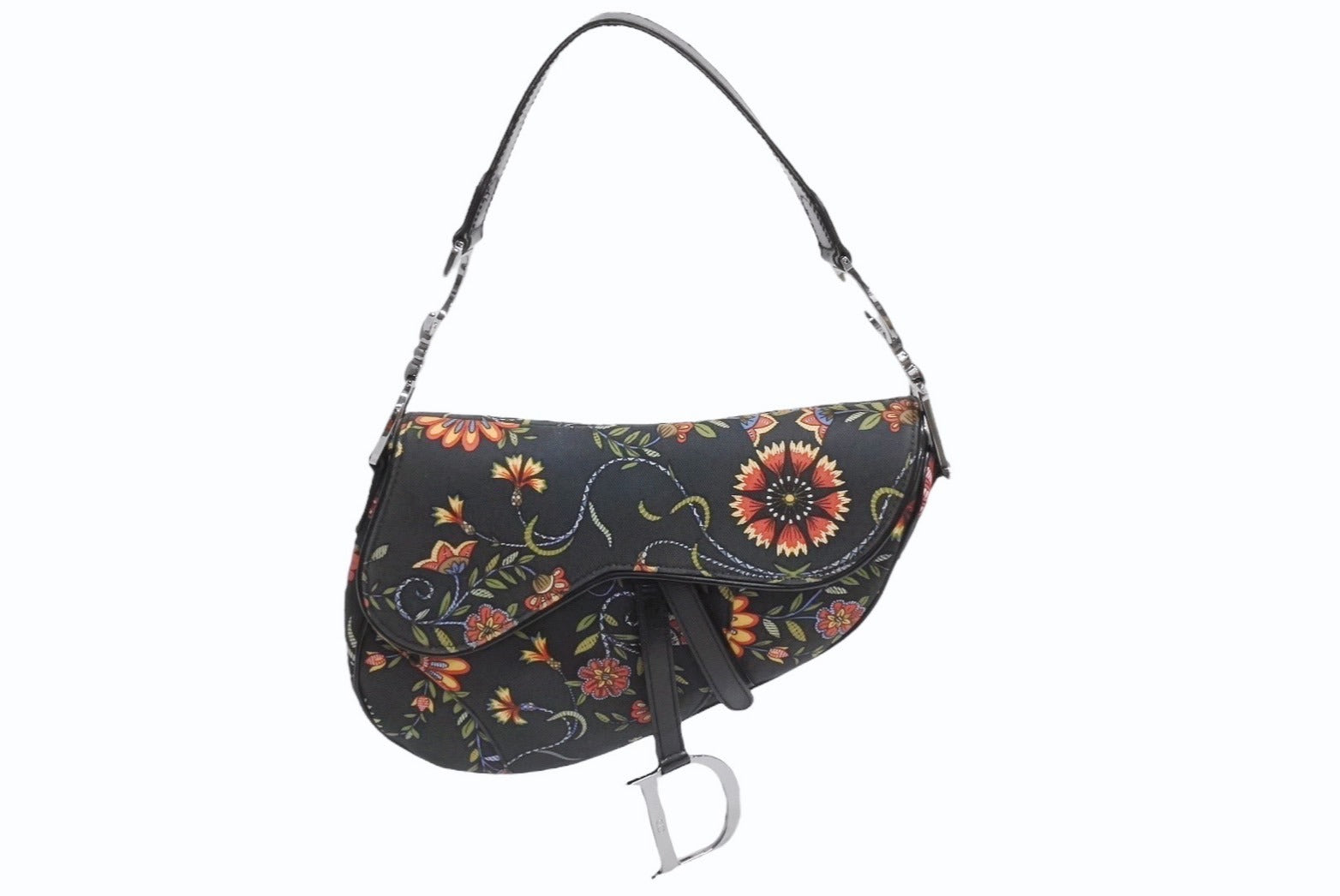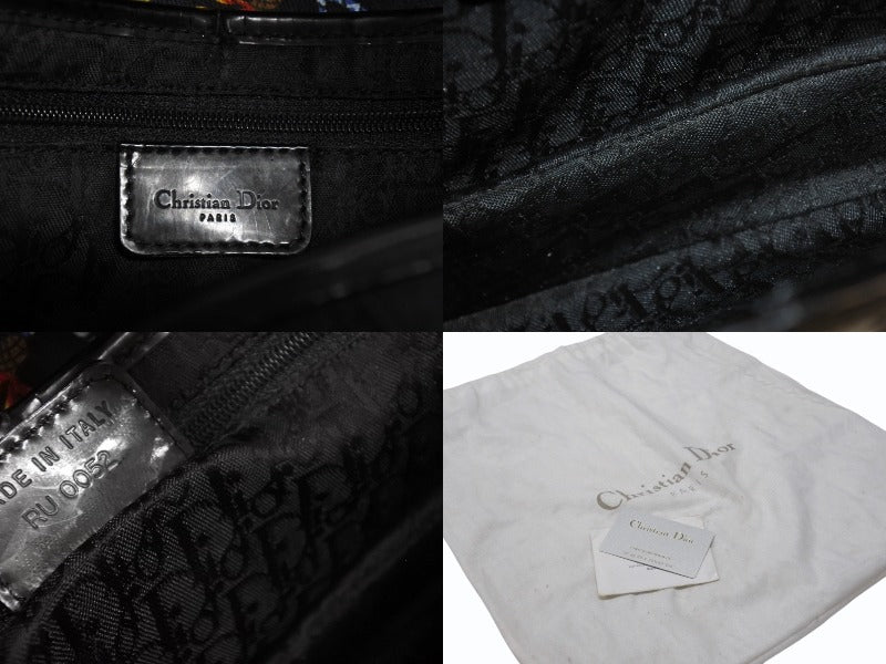 CHRISTIAN DIOR クリスチャンディオール ガリアーノ期 サドルバッグ RU0052 キャンバス レザー マルチカラー シルバー金具 美品 中古 4b003695