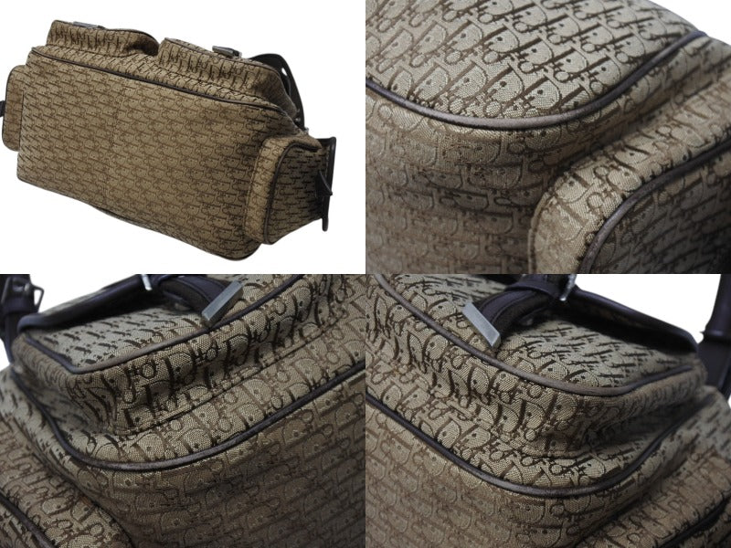 Christian Dior クリスチャンディオール ショルダーバッグ トロッター キャンバス ベージュ ブラウン シルバー金具 美品 中古 4b003701