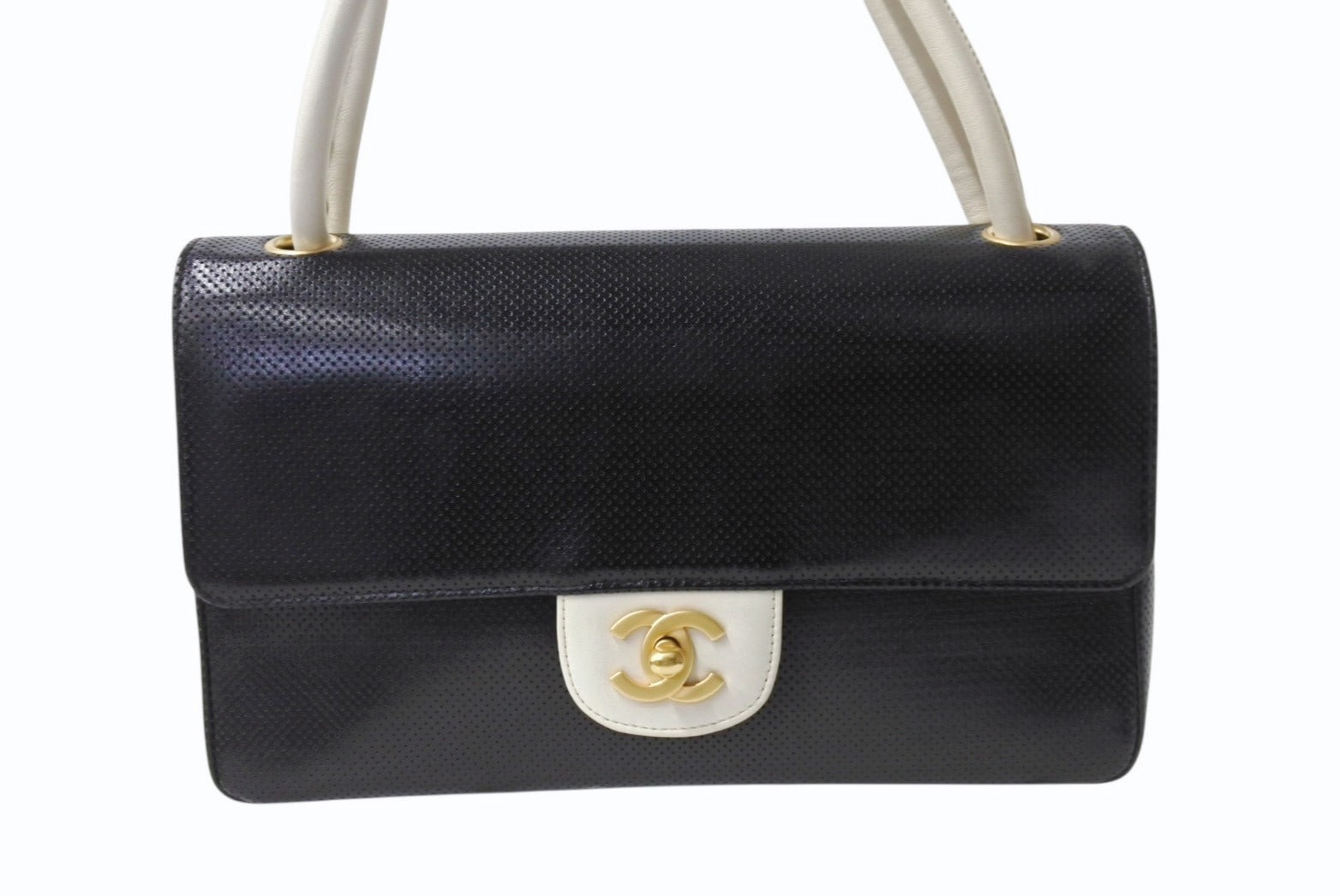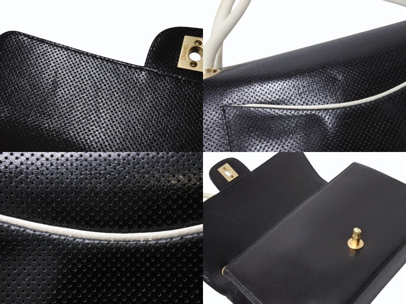 極美品 CHANEL シャネル ワンショルダーバッグ 6番台 バイカラー パンチングレザー ホワイト ブラック ゴールド金具 中古 4b003786