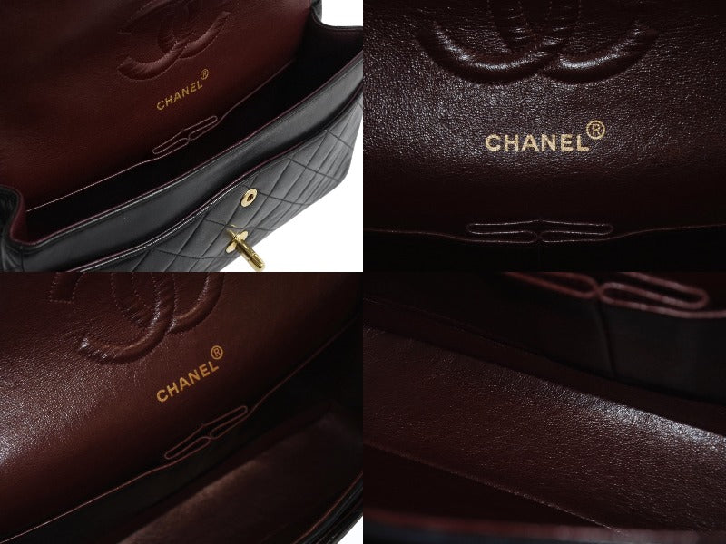 極美品 CHANEL シャネル マトラッセ25 Wフラップ Wチェーンショルダーバッグ 2番台 ラムスキン ココマーク ブラック ゴールド金具 中古 4b003836