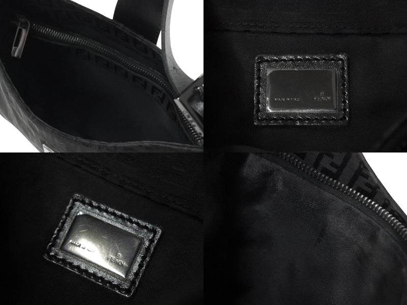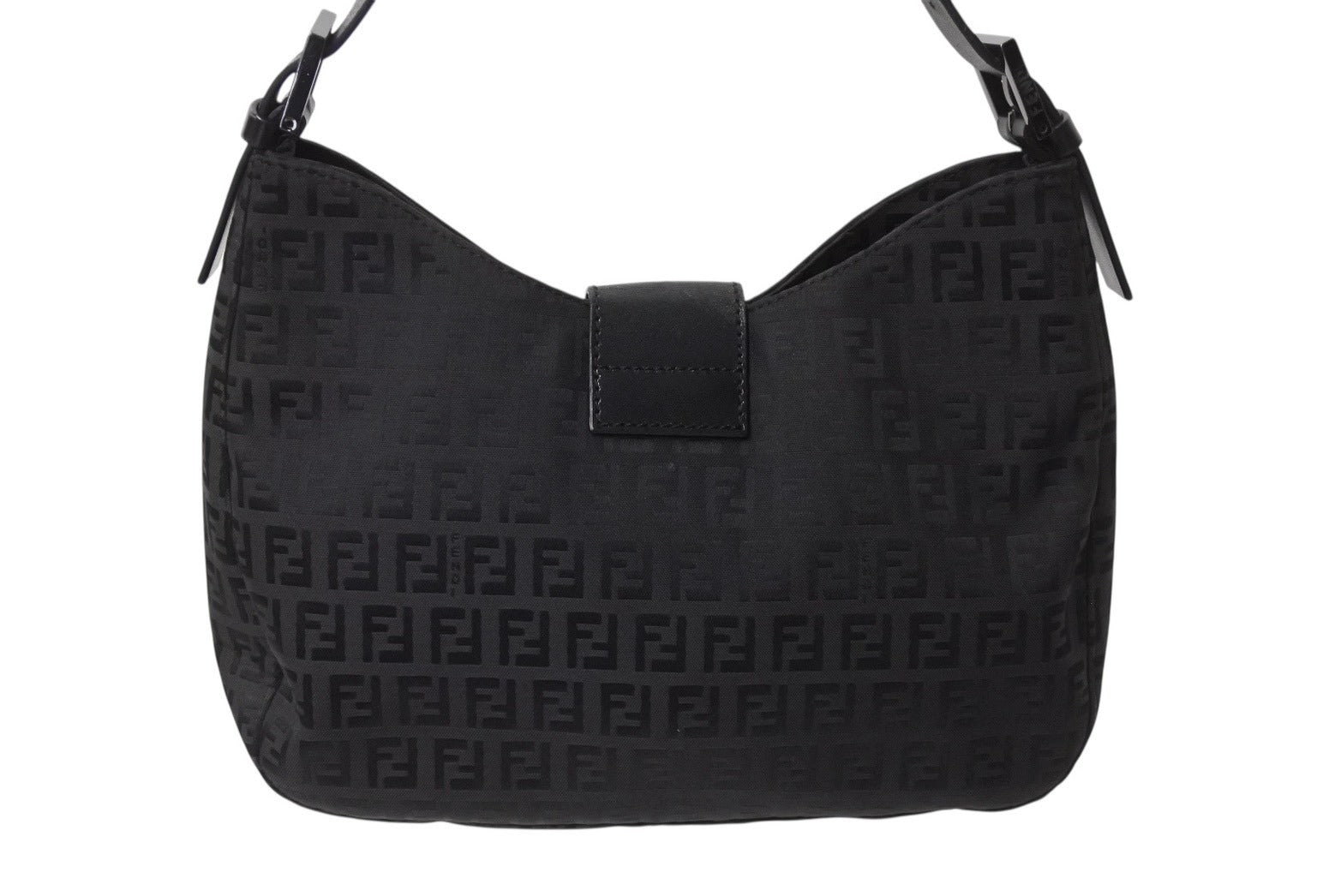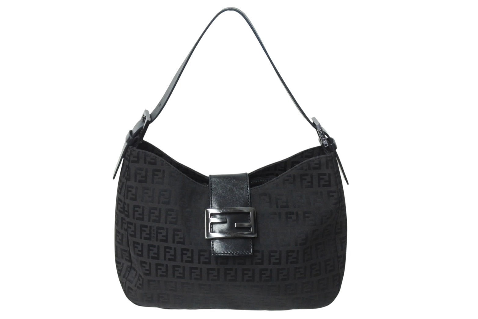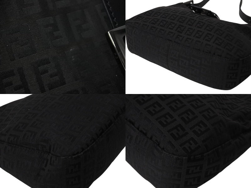 FENDI フェンディ マンマバケット ホーボー ワンショルダーバッグ 8BR036 ズッキーノ柄 キャンバス レザー ブラック 美品 中古 4b003917