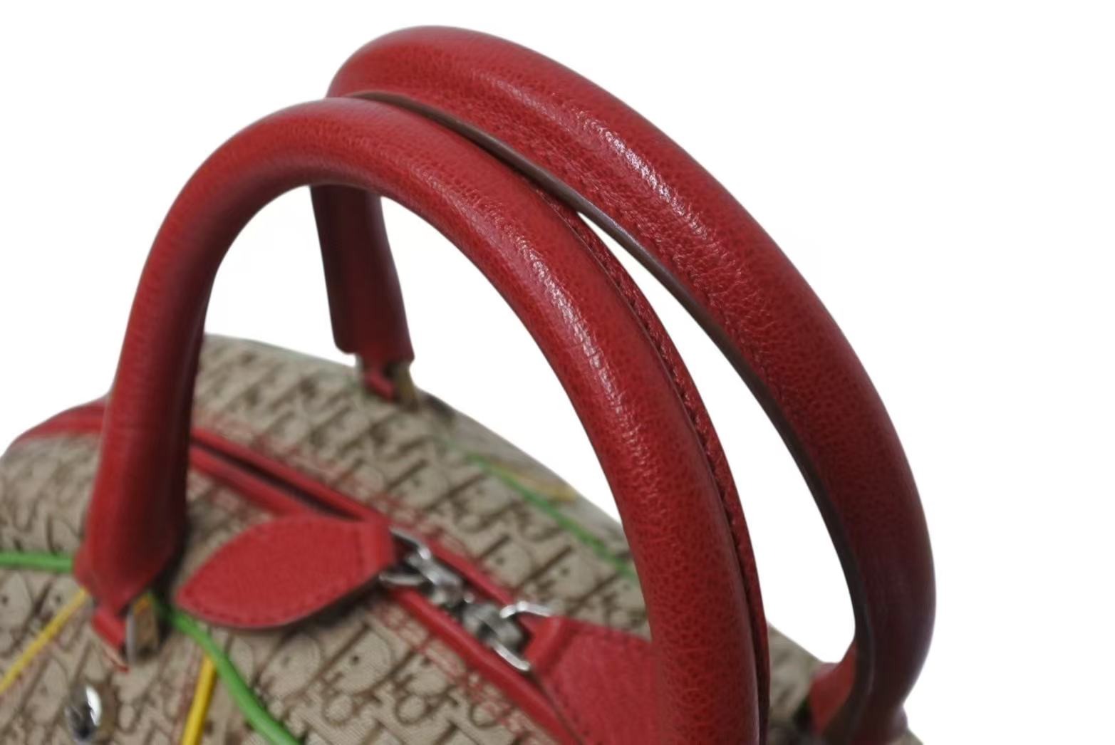 全体的に多少の使用感、毛羽立ちあり。ハンドルに多少の傷あり。金具にくすみあり。その他目立つ傷や汚れの少ない極美品です。
