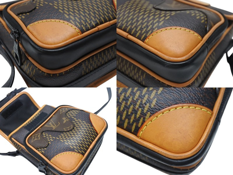 少々角スレあり。パイピングにスレ、シミ、やけあり。サイド面に少々汚れあり。表面ヌメ革部分にヤケ、シミ、少々スレあり。ショルダーストラップに少々汚れ、スレ、シワ、歪みあり。その他使用感の少ない状態です。