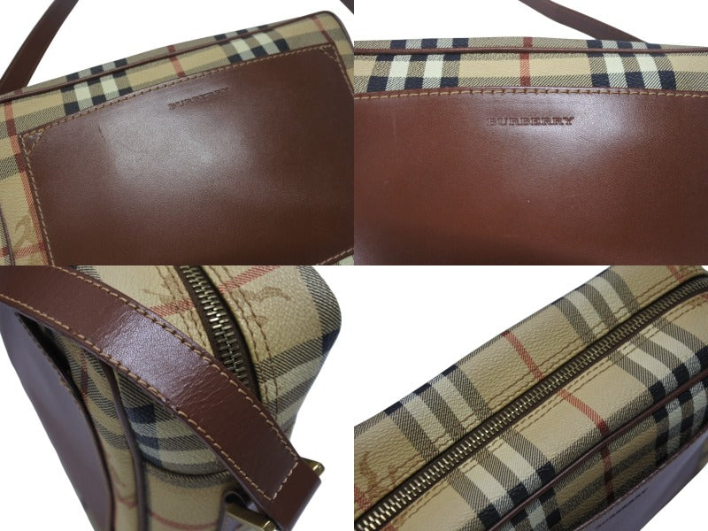 極美品 BURBERRY バーバリー ショルダーバッグ ノバチェック ベージュ ブラウン PVC ゴールド金具 中古 4b005298
