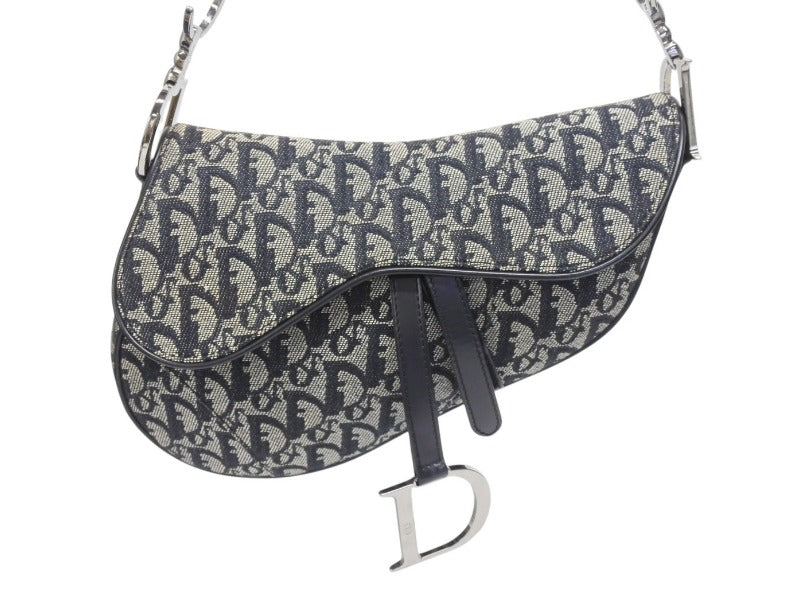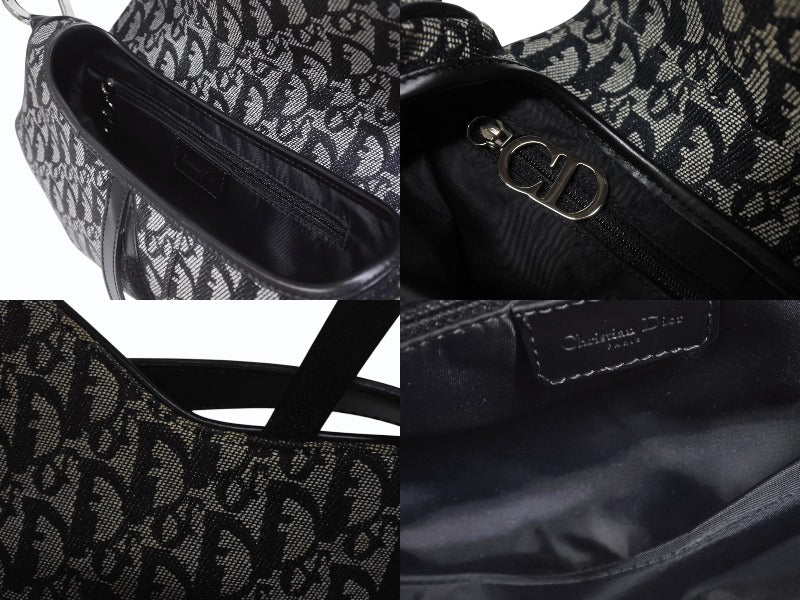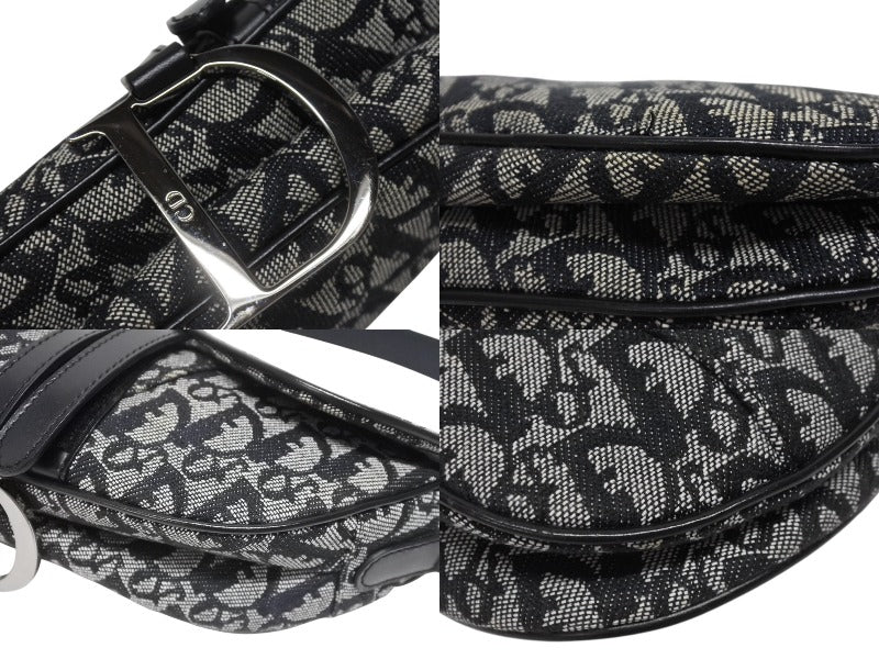 極美品 Christian Dior クリスチャンディオール トロッター サドルバッグ ブラック ガリアーノ期 シルバー金具 ブラック ロゴ 中古 4b005447
