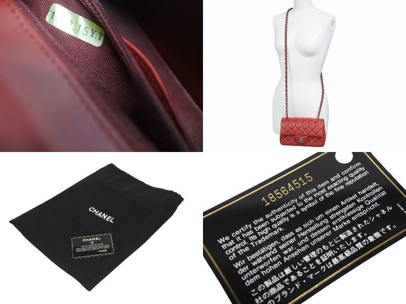 極美品 CHANEL シャネル ミニマトラッセ20 Sフラップ Sチェーンショルダーバッグ 18番台 ココマーク ラムスキン レッド 中古 4b006149