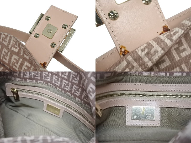 FENDI フェンディ ズッキーノ柄 マンマバケット ワンショルダーバッグ 8BR003 ピンク ガンメタリック金具 美品 中古 4b006144