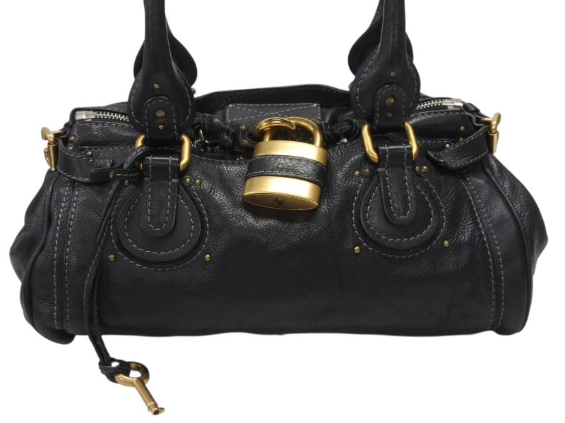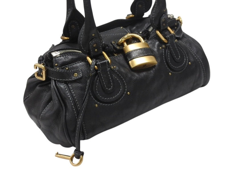 Chloe クロエ ハンドバッグ パディントン ワンショルダーバッグ ブラック レザー 7ESA02 ゴールド金具 美品 中古 4b006527