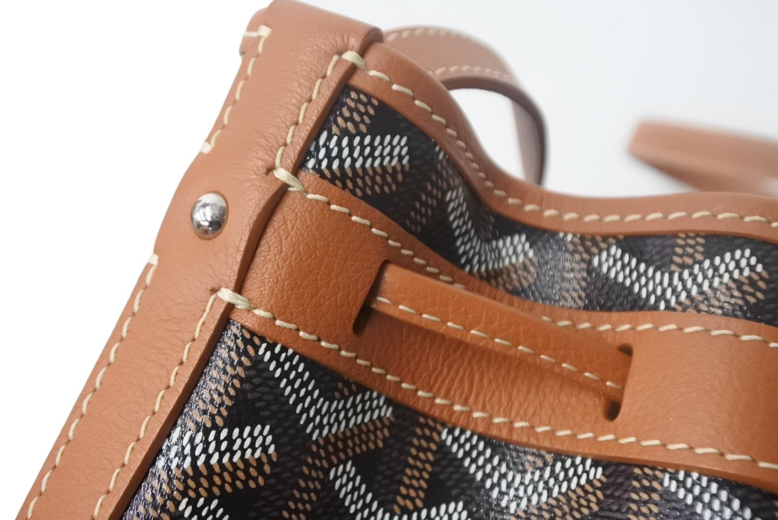軽くてフェミニン。プティ・フロは、丈夫なゴヤールディン・キャンバスにより、その姿を常に美しく保ちます。また、容易に中身の出し入れに合わせて広さが変えられるレザーストリングがもたらす利便性や安全性も忘れていません。