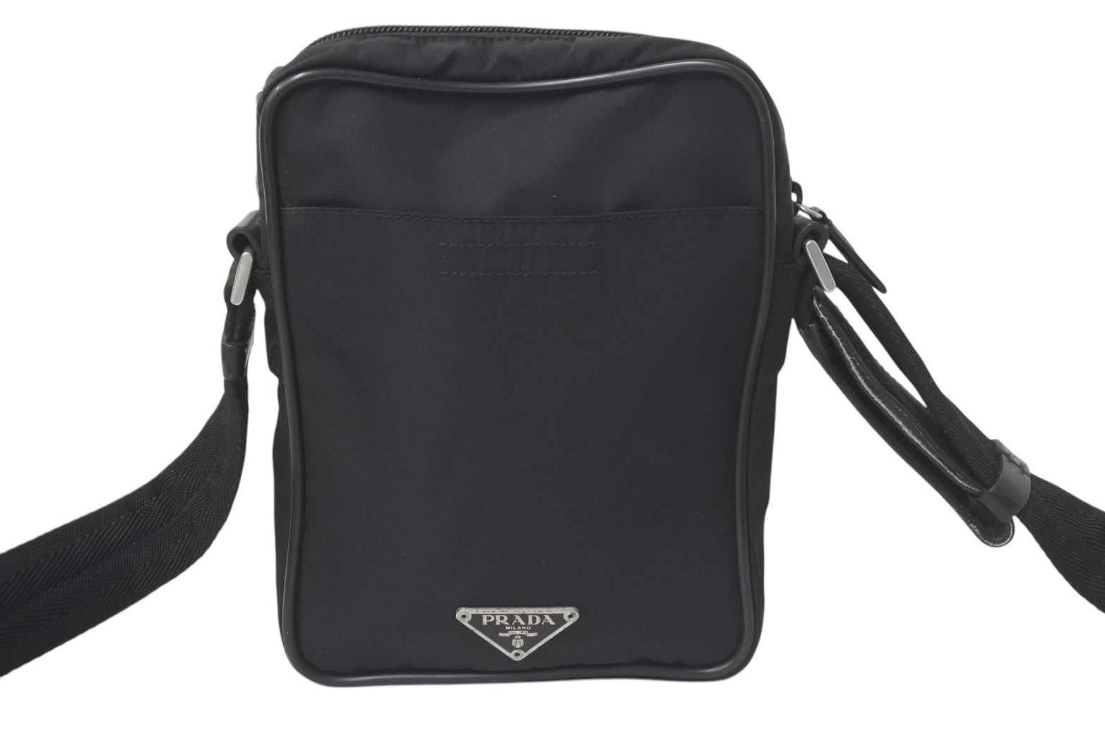 ナイロンに少々色褪せあります。シルバー金具とレザー部分微かにスレ、小傷あります。
