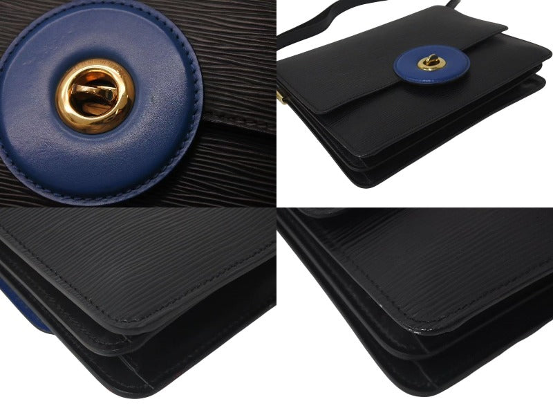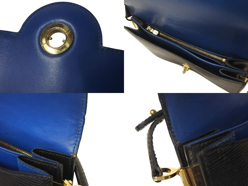 表面に特徴的なブルーの円になった開閉金具があり、人気のエピ素材を用いた上品なバッグです。