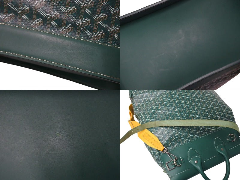 表面下部、背面ハンドル部分、開口部フラップ部分に少々スレあり。表面下部に一部、押し跡あり。開口部レザーにシワあり。開口部レザー内側変色あり。その他使用感少なく極美品です。