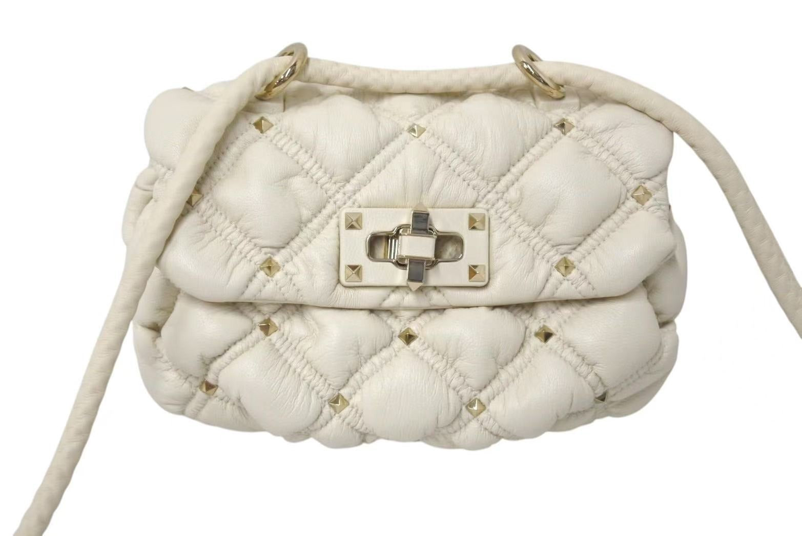 極美品 VALENTINO GARAVANI ヴァレンティノ ガラヴァーニ スパイクミー VW2B0H79MCW ハンドバッグ ショルダーバック ホワイト 中古 4c074842